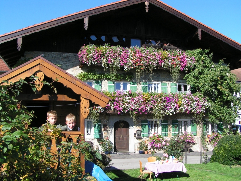 Auf unserem liebevoll renovierten,denkmalgeschützten Bauernhof mit dem Prädikat Vom Gast empfohlenes Haus in zentraler Ortslage erwarten Sie gemütlich und geschmackvoll eingerichtete große Gästezimmer mit DU/WC. Die großzügige Ferienwohnung mit Wohnküche, 2 Schlafzimmern, Bad und Balkon vermittelt familiäre Wohnatmosphäre. Unseren Gästen stehen Frühstücksstube, Gästegartenhaus, Grill,Terrasse, Liegewiese undSpielplatz zur Verfügung. Wir sind ein idealer Ausgangspunkt für Ausflüge in alle Himmelrichtungen, z. B. nach Berchtesgaden, Königsee, Salzburg, München.
