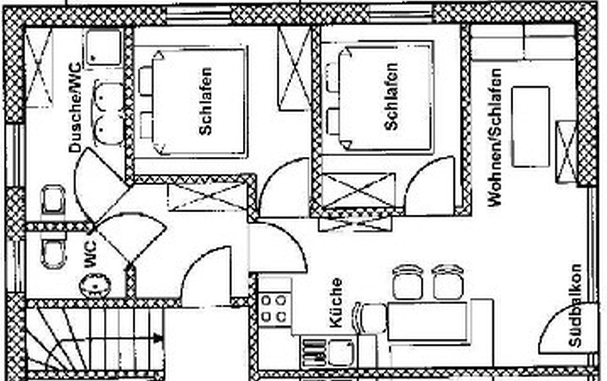 4-Sterne Ferienwohnung mit 2 seperaten Schlafzimmern, zusätzliches Kinderbett möglich, komplett eingerichtete Einbauküche mit Geschirrspüler, Wohnecke mit gemütlichem Sofa mit SAT-TV und Stereoanlage, Bad mit Dusche /WC, zusätzliches WC, Südbalkon mit Sitzgelegenheit, seperater Eingang im 2. Stock, Waschmaschine gegen Gebühr, W-LAN
