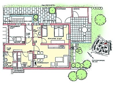 ALLGEMEIN: Ruhige zentrale Lage in Laufen-Süd am Grüngürtel.Souterrainwohnung in freistehendem Wohnhaus, mit eigenem Eingang. REGELBELEGUNG: 2 Personen ( Buchungen bis 3 Personen auf telefonische Anfrage). Nichtraucherwohnung. Tiere nach Rücksprache. Die Ferienwohnung ist hochwertig und komplett ausgestattet. RÄUMLICHKEITEN: Schlafzimmer 17,33 m², Wohn-Esszimmer 27,08 m², Küche 7,79 m², Bad/Dusche/WC 6,95 m², WC-extra 3,30 m², Flur/Garderobe 9,23 m². HEIZUNG/LÜFTUNG: Fussbodenheizung in allen Räumen, Raumbe- und Entlüftung über Außenfenster. UNTERHALTUNGSELEKTRONIK: HD-Flachbildfarbfernseher (SAT/DVBT), DVD/CD-Player,Radio-Stereoanlage, Telefon mit Direktwahl. Internetanschluss (WLAN).GERÄTEAUSSTATTUNG: Einbauküche, Dunstabzug Abluft, Backofen, Geschirrspüler,Cerankochfeld, Kühlschrank, Mikrowelle, Tiefkühlfach, Waschmaschine, Wäschetrockner, Fön, Bügelmöglichkeit, Staubsauger, Rauchmelder, diverse Kleingeräte.