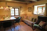 Vollausgestattete Küche. Der Kachelofen verbreitet wohlige Wärme in der kalten Jahreszeit.