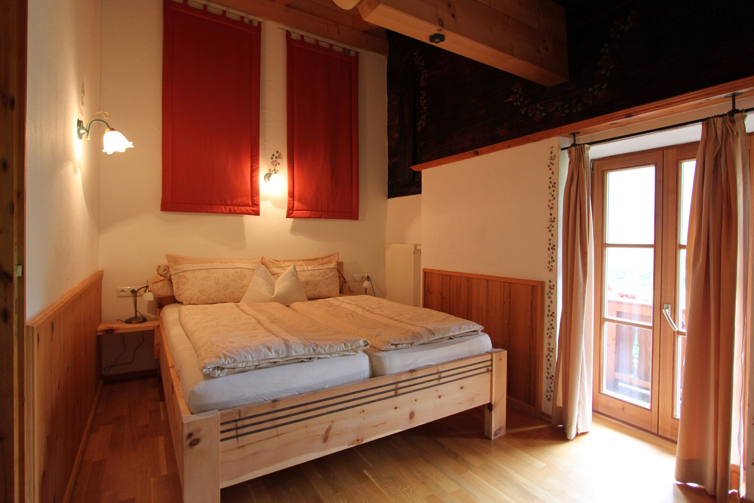 Moderne, baubiologische Einrichtung, Parkett- und Fliesenböden. Erholsamer Schlaf in unseren Zirbenbetten ist garantiert.