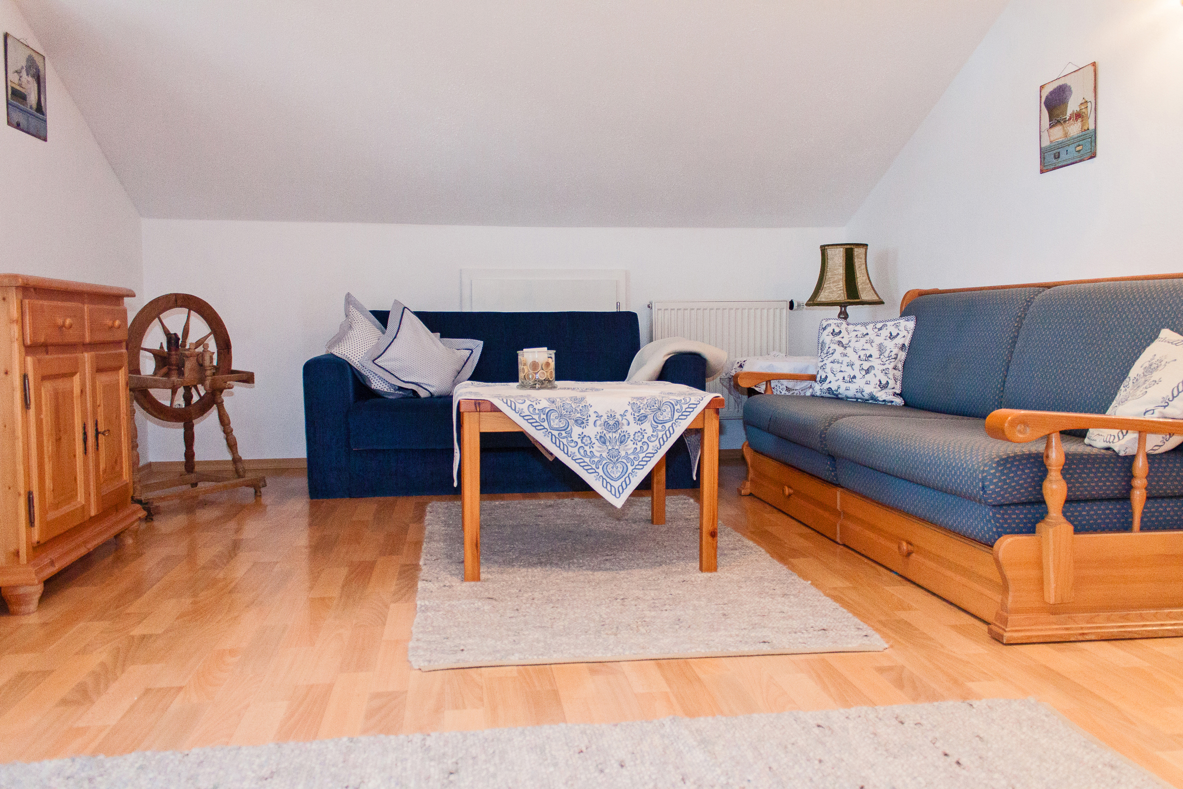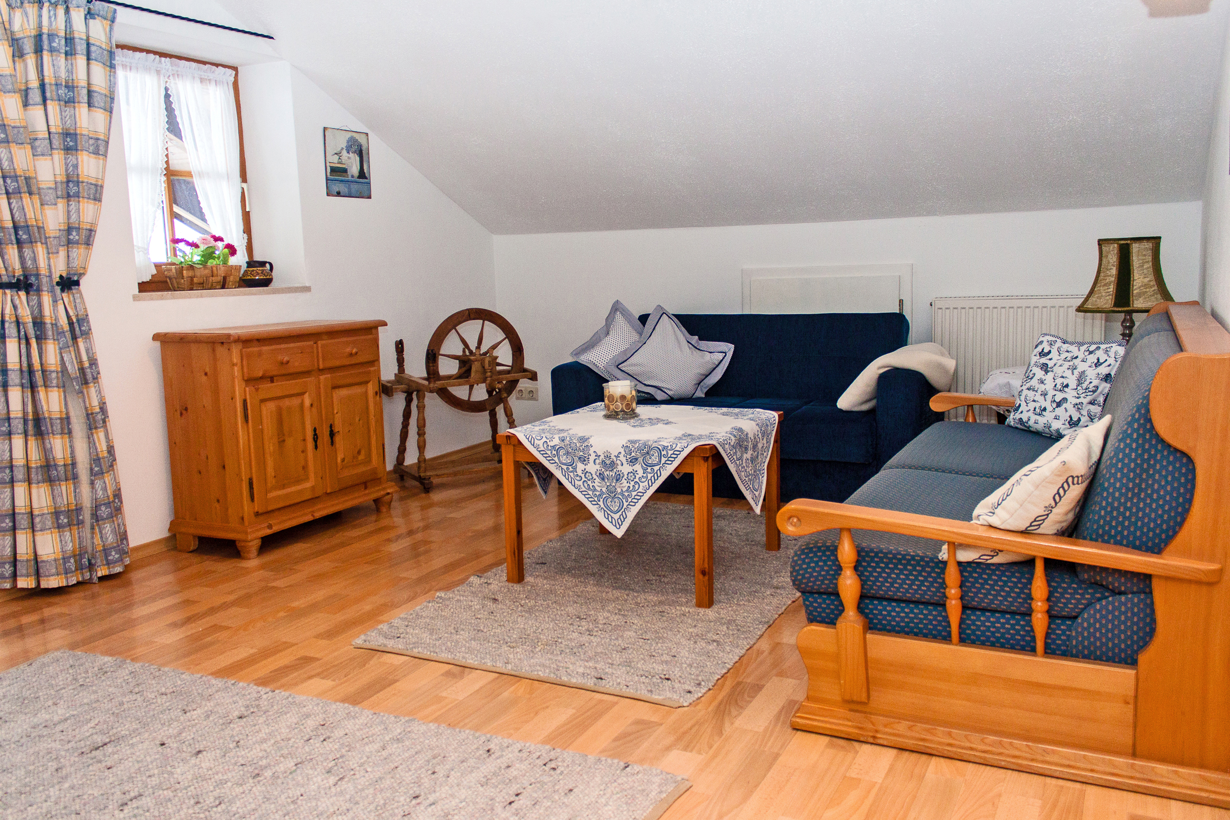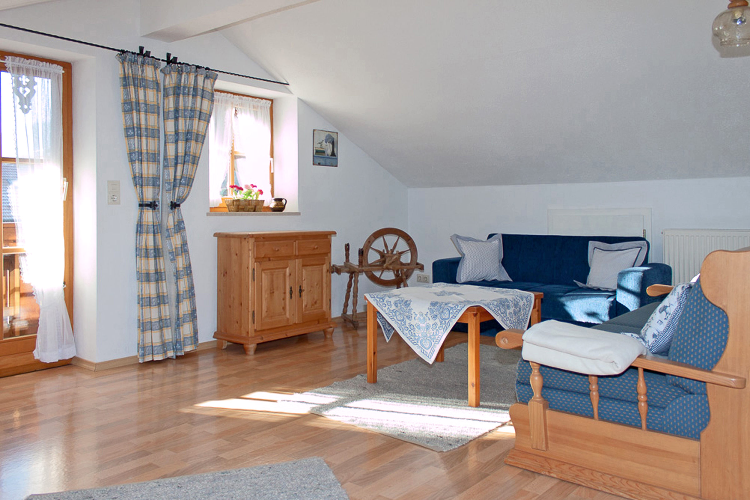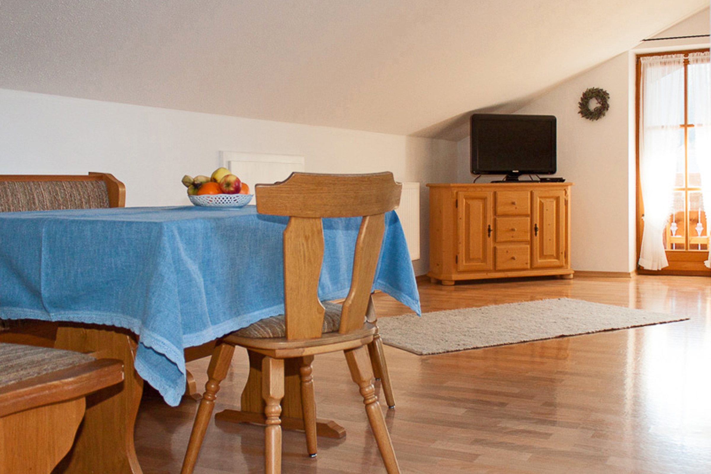 Die helle 60 qm Nichtraucher-Ferienwohnung Bergstüberl ist im gemütlichen Landhausstil mit Naturholzmöbeln eingerichtet. Südbalkon mit Blick auf das Schloss Hohenaschau, im 2. Obergeschoss mit leichter Mansarden-Dachschräge, separater Eingang durch Außentreppe. Wohnraum mit Essecke, Flachbild-TV, kostenloses WLAN und Couch. Zum Wohnraum hin offene Einbauküche mit Herd mit Backofen, Kühlschrank mit Tiefkühlfach und Mikrowelle. Separates Schlafzimmer mit Doppelbett. Badezimmer mit Badewanne, WC und Fön. Kinderbett und Kinderhochstuhl auf Anfrage. Haustiere und Hunde dürfen nicht mitgebracht werden.