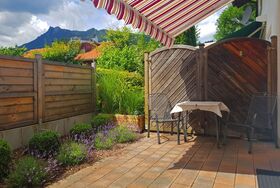 Unsere liebevoll eingerichtete Nichtraucher-Ferienwohnung im Erdgeschoss bietet auf 28 qm Platz für zwei Personen – ideal für eine entspannte Auszeit zu zweit. Genießen Sie sonnige Stunden auf der Südterrasse mit herrlichem Blick auf die Berge und Schloss Hohenaschau. Die Wohnung verfügt über einen offenen Wohnbereich mit Küche, Essplatz und gemütlicher Couch zum Fernsehen (Flat-SAT-TV, kostenloses WLAN). Die Küchenzeile ist ausgestattet mit kleinem Ceranfeld, Backofen, Kühlschrank und Filter-Kaffeemaschine. Im separaten Schlafzimmer mit Doppelbett gelangen Sie direkt auf die Terrasse. Das moderne Bad bietet Dusche, WC und Fön. Ein Babybett stellen wir Ihnen auf Wunsch gerne bereit. Der ebenerdige Zugang mit nur einer Stufe macht die Wohnung behindertenfreundlich (nicht rollstuhlgerecht). Bitte haben Sie Verständnis, dass Haustiere nicht erlaubt sind.