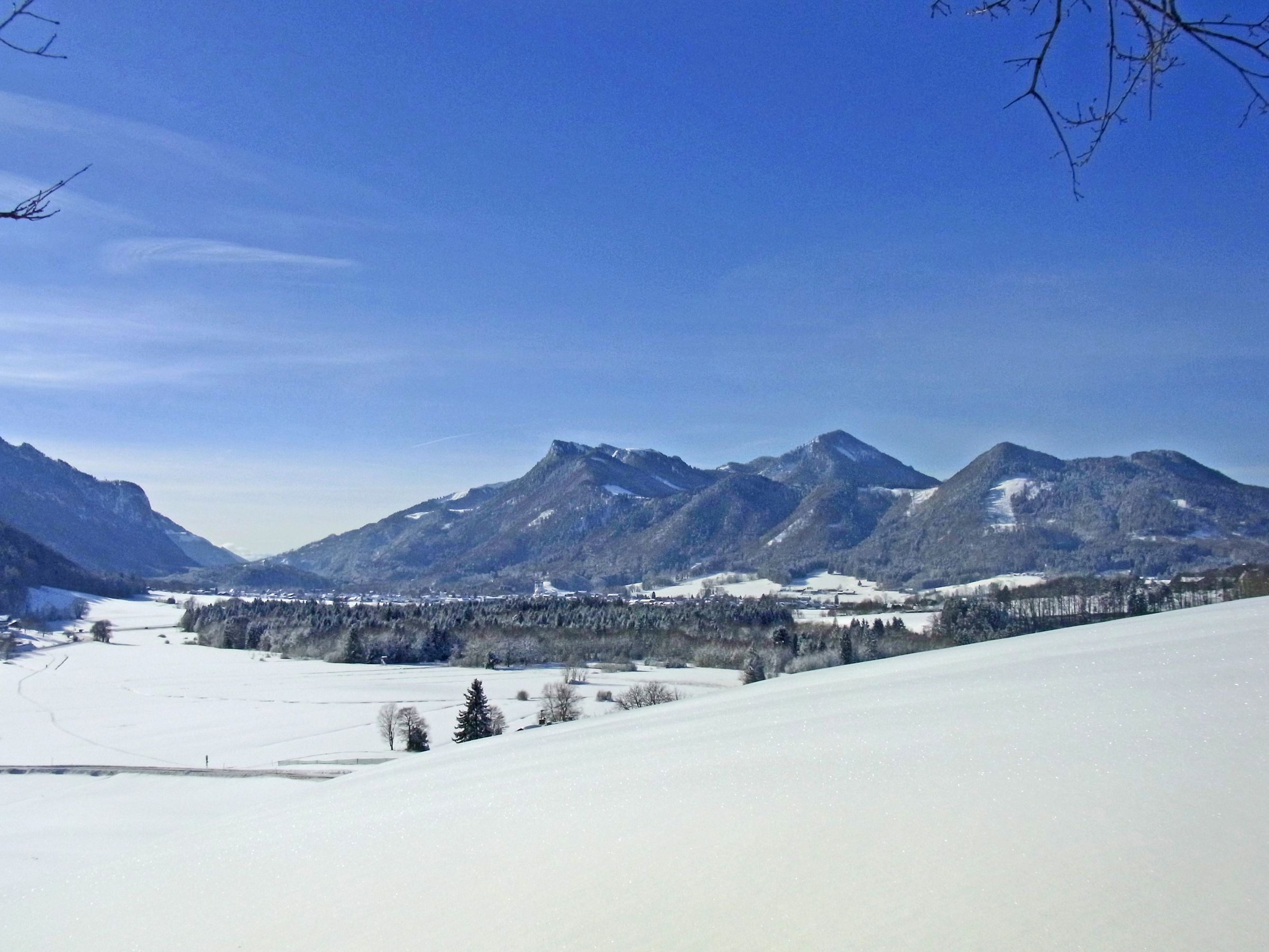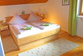 Komfortable, gemütliche Ferienwohnung mit Parkettboden im 2. Obergeschoss und großem überdachtem Ostbalkon mit herrlichem Ausblick auf die Berge. Zwei extra Schlafzimmer, ein Schlafzimmer mit Doppelbett und ein Schlafzimmer mit zwei Einzelbetten, die auch zusammengeschoben werden können. Auf Anfrage kann ein Kinderbett aufgestellt werden. Gemütlicher Wohnraum mit Küchenzeile, Spülmaschine, Backofen, einer Eckbank, Stühle und Tisch zum Essen (Kinderhochstuhl möglich) und eine Couch-Sitzgruppe, SAT-TV, kostenloses WLAN und Radio. Badezimmer mit Dusche/WC und Fön. Für Kinder: Spielwiese und Kinderfuhrpark am Haus. Haustiere dürfen nicht mitgebracht werden.