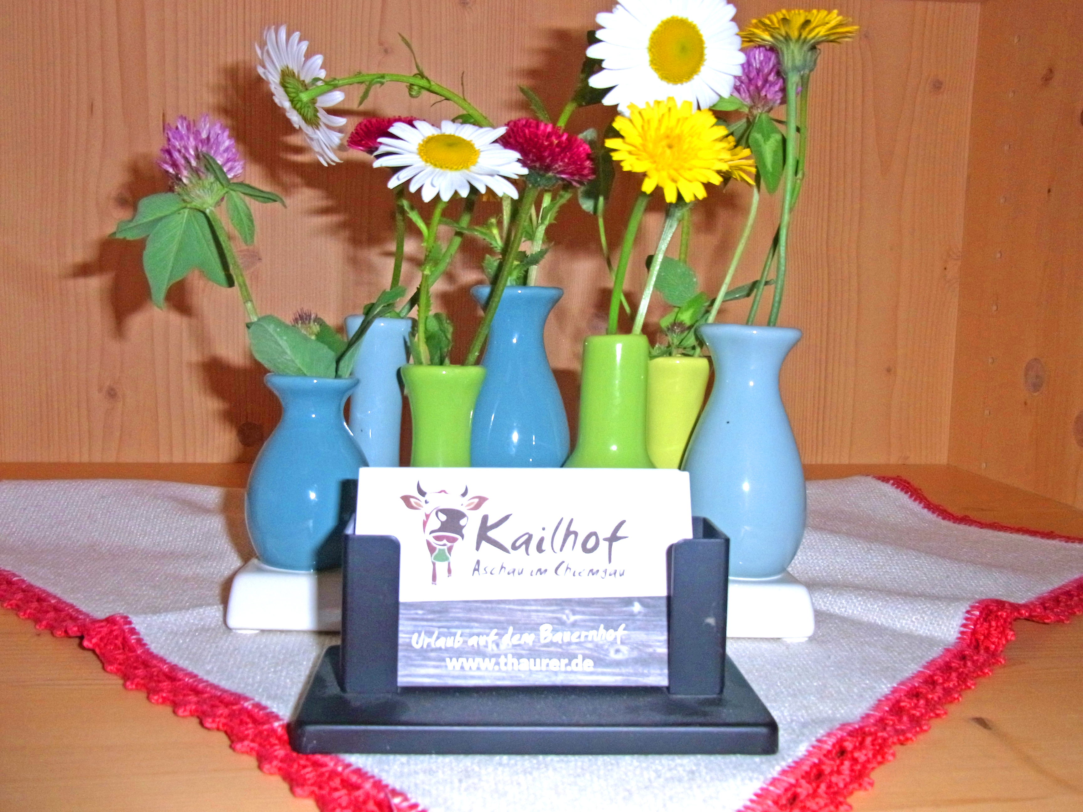 Zwischen Chiemsee und Kampenwand befindet sich unser Bauernhof, der Kailhof in erhöhter, ruhiger Lage mit Blick ins reizvolle Priental in Richtung Aschau im Chiemgau mit einem herrlichen Bergblick. Ein Ort zum Wohlfühlen, entspannen und genießen. Erholung pur, in einer traumhaften Landschaft. Wir sind mit den Gütesiegeln Naturland klassifiziert. Auf Wunsch bieten wir Brötchenservice, Bio-Milch und Bio-Eier ab Hof an. Führung der Bäuerin zu Hofgeschichte und Landwirtschaft. Kinder sind herzlich willkommen, Spielwiese und Kinderfuhrpark. Wir sind ein idealer Ausgangspunkt für viele Wanderungen und Radtouren in Richtung Chiemsee und Berge, oder Sie erkunden unsere schöne Chiemgau/Chiemsee Region mit dem Auto. Wer mit dem E-Auto bei uns anreist findet eine Ladestation für E-Autos vor, und getankt wird dann Sonnenstrom von der eigenen PV-Anlage. Für Ihre Fahrräder steht eine absperrbare Fahrradgarage mit Lademöglichkeit für Ihre E-Bikes zur Verfügung.