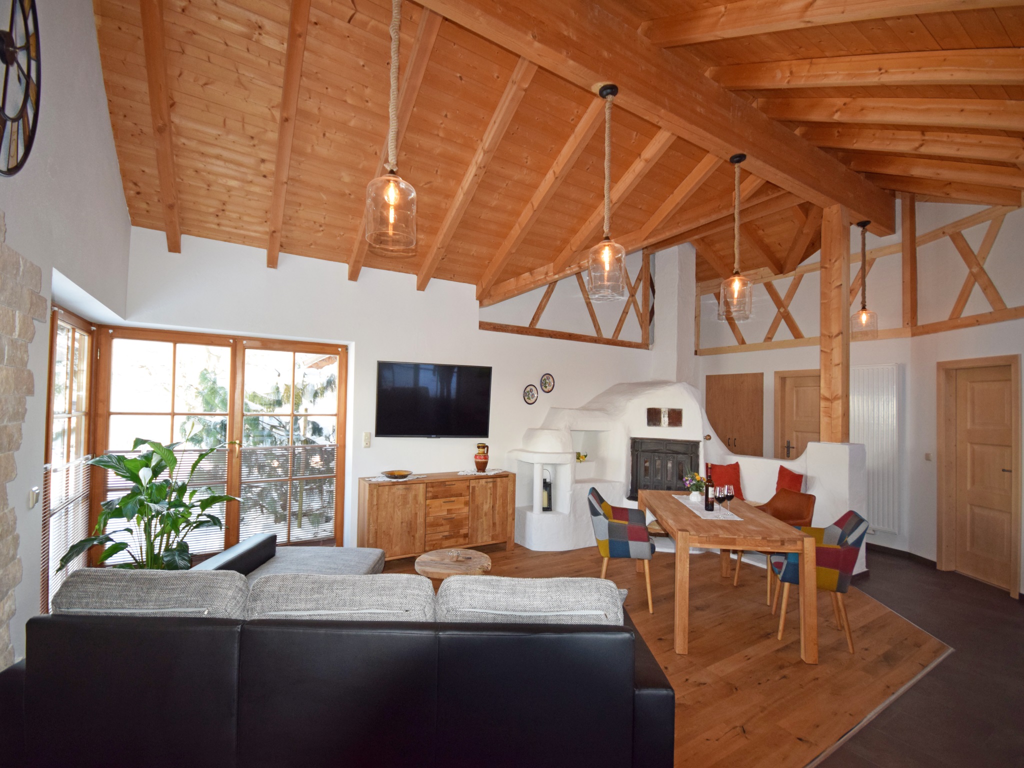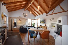 Anfang 2017 wurde die 72 Quadratmeter große, im ländlichen Stil, mit Sichtbalken, komfortabel eingerichtete Ferienwohnung, neu renoviert. Diese ist ideal für 2-3 Personen. Außerdem bequem begehbare Dusche, Ceranfeld, Backofen, Geschirrspülmaschine, Kaminofen. Terrasse mit Gartenmöbel, Swimmingpool, Parkplatz am Haus, am Ortsrand gelegen, 6 Gehminuten zur Ortsmitte, barrierefrei.Haustier gegen Gebühr erlaubt.
