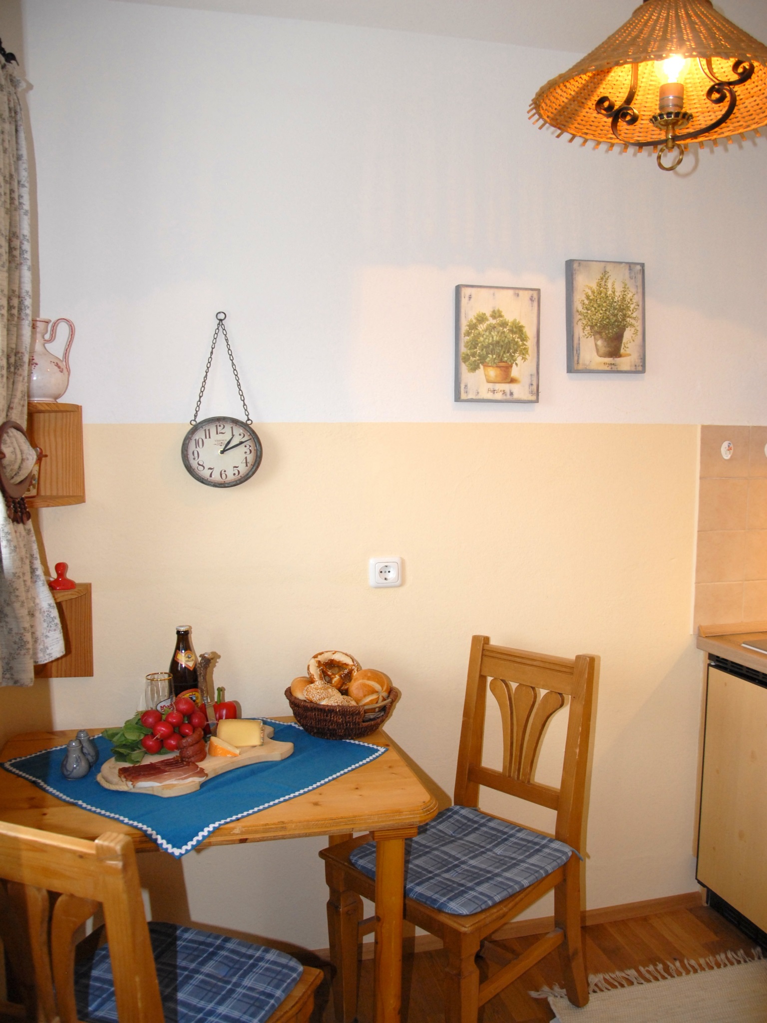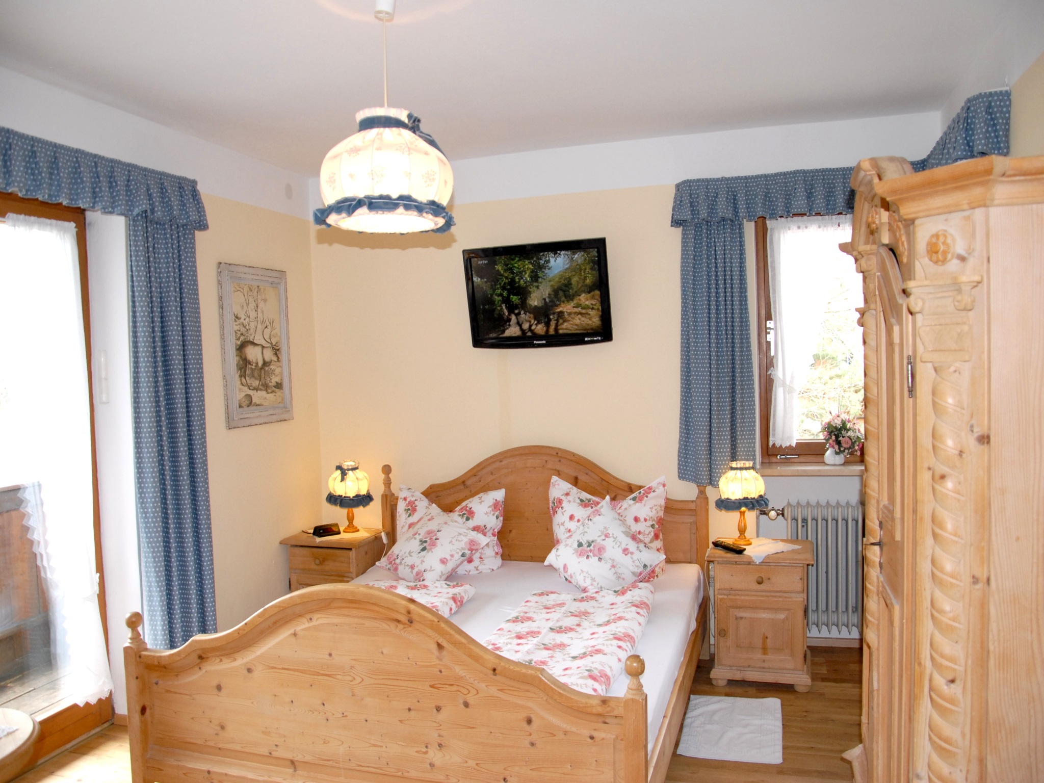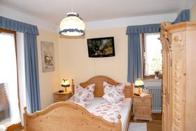Komfortabel eingerichtete, gemütliche Ferienwohnung im Landhausstil mit sonnigem West-Balkon und herrlichem Bergblick, ideal für den Urlaub zu zweit. Wohn-Schlafraum mit großem Doppelbett 180/200 cm. Separate Kochnische mit 2-Plattenherd und Essplatz. Badezimmer mit Dusche und WC, Vergrößerungsspiegel und Fön. W-LAN.Haustier gegen Gebühr erlaubt.