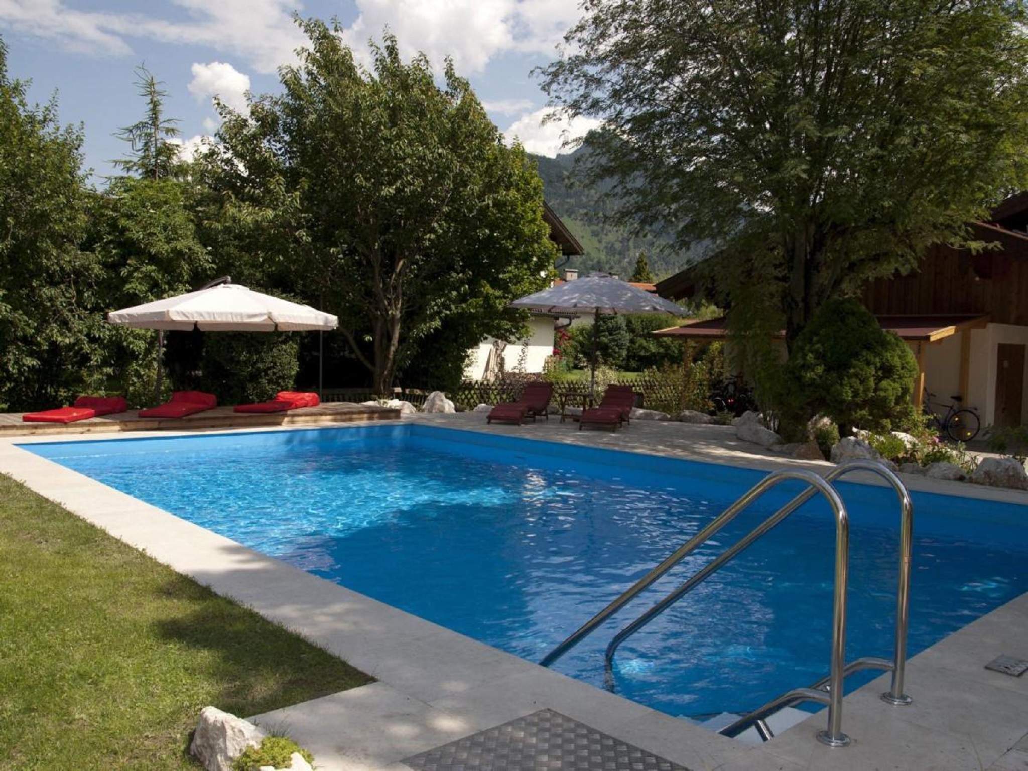 Die Region rund um Grassau ist das ganze Jahr über ein lohnenswertes Urlaubsziel. Die vielen Aktivitäten und die wunderschöne Landschaft lassen die Seele aufleben und den Alltag vergessen. Deshalb haben wir unser Gästehaus laufend erweitert und können Ihnen nun ein wahres Urlaubsparadies bieten. Das Gamsei-Schwimmbad In der großen Gartenanlage befindet sich ein modernes, solarbeheiztes Schwimmbad mit einer Größe von 10 x 6 Metern. Direkt am Pool können Sie sich auf den bequemen Liegen entspannen und die traute Zweisamkeit genießen. Da es sich um einen Außenpool handelt bitten wir um Ihr Verständnis, dass das Schwimmbad nur im Sommer zur Verfügung steht. Der Garten In unserem schön angelegten Garten können Sie die Seele baumeln lassen. Auf dem Rasen stehen im Sommer gemütliche Liegestühle für Sie bereit. Der eigene Grillplatz mit Sitzgelegenheit kann von unseren Gästen jederzeit kostenlos genutzt werden. Die Sonnenterrasse direkt am Garten ist ebenfalls ein beliebter Aufenthaltsort unserer Gäste. Die Kellerbar Für lustige Abende an regnerischen Sommertagen oder an kalten Wintertagen können Sie unsere Kellerbar aufsuchen.Haustier gegen Gebühr erlaubt.