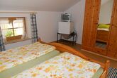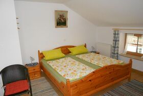 Das helle, freundliche Doppelzimmer im 2. Stock ist im bäuerlichen Stil eingerichtet und verfügt über eine Sitzgelegenheit, Balkon, eigenem Kühlschrank, SAT-TV und WLAN. Das Etagenbad mit DU/WC nutzen nur die Gäste dieses Zimmers. Reichhaltiges Frühstück mit teilweise eigenen Produkten, auf Wunsch auf der Terrasse. Zustellbett auf Anfrage möglich.