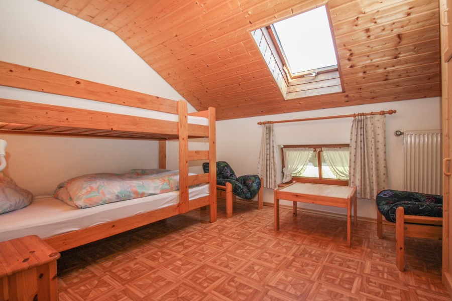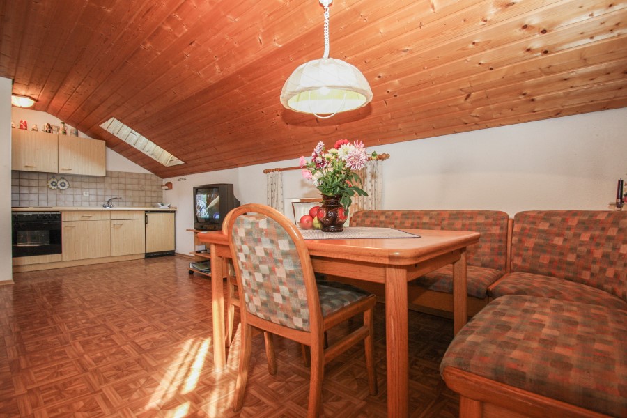Die Ferienwohnung Waldblick mit Balkon bietet 60 m² Wohnfläche für 4 - 5 Personen. Auf Wunsch haben Sie auch die Möglichkeit auf einen Brötchenservice. Sie verfügt über einen großen Wohn-/Schlafraum mit zusätzlichem Kinderzimmer, Kochnische, Essplatz, Dusche und WC, Ostbalkon mit Blick zur Alz.