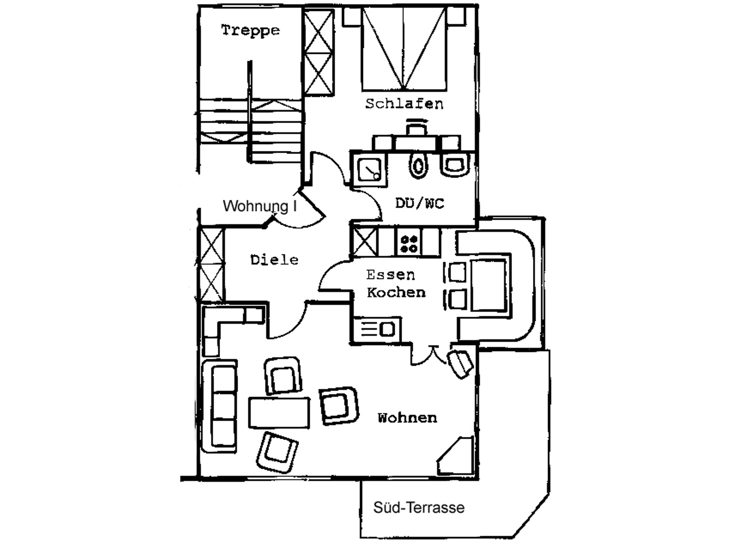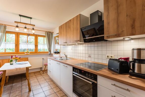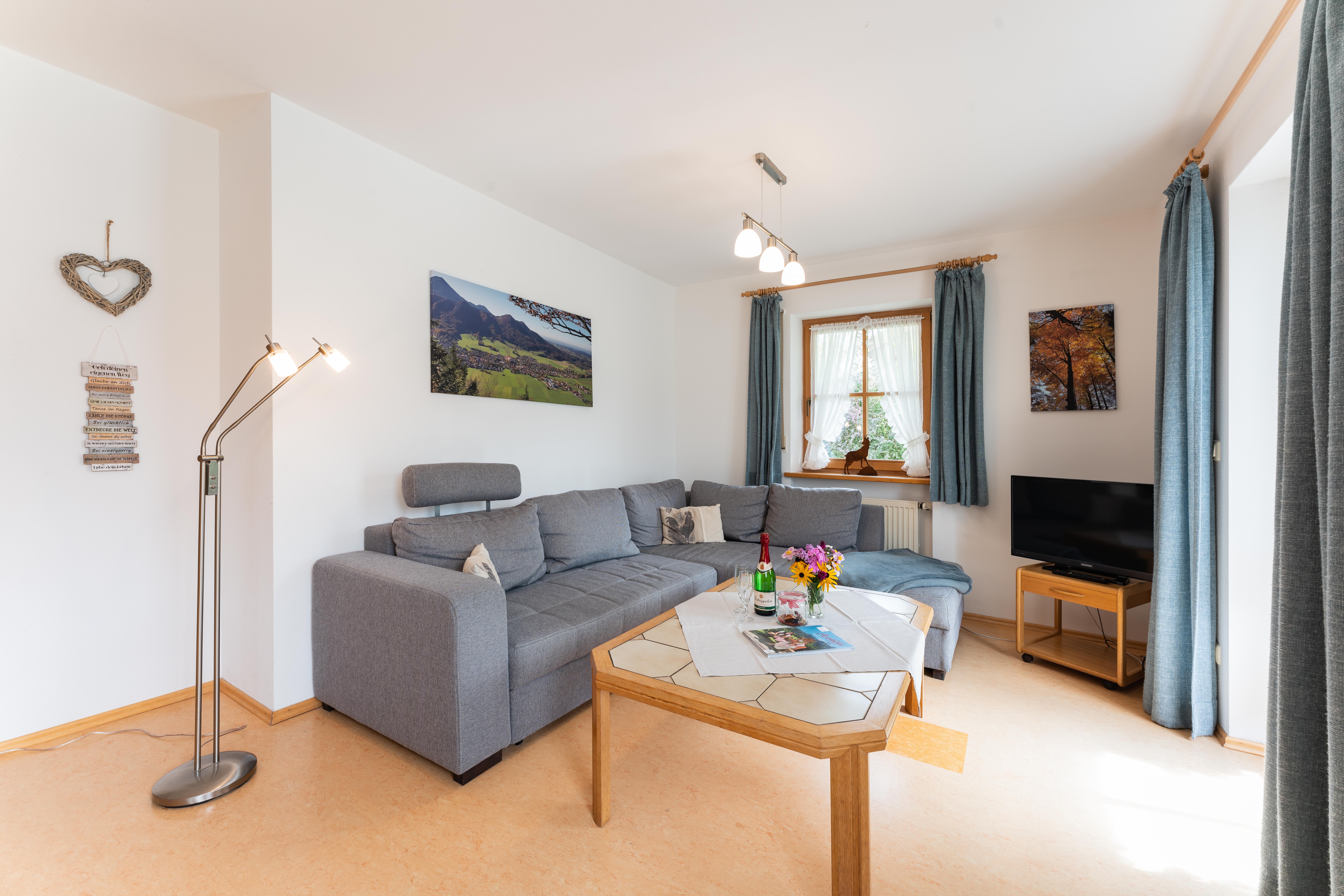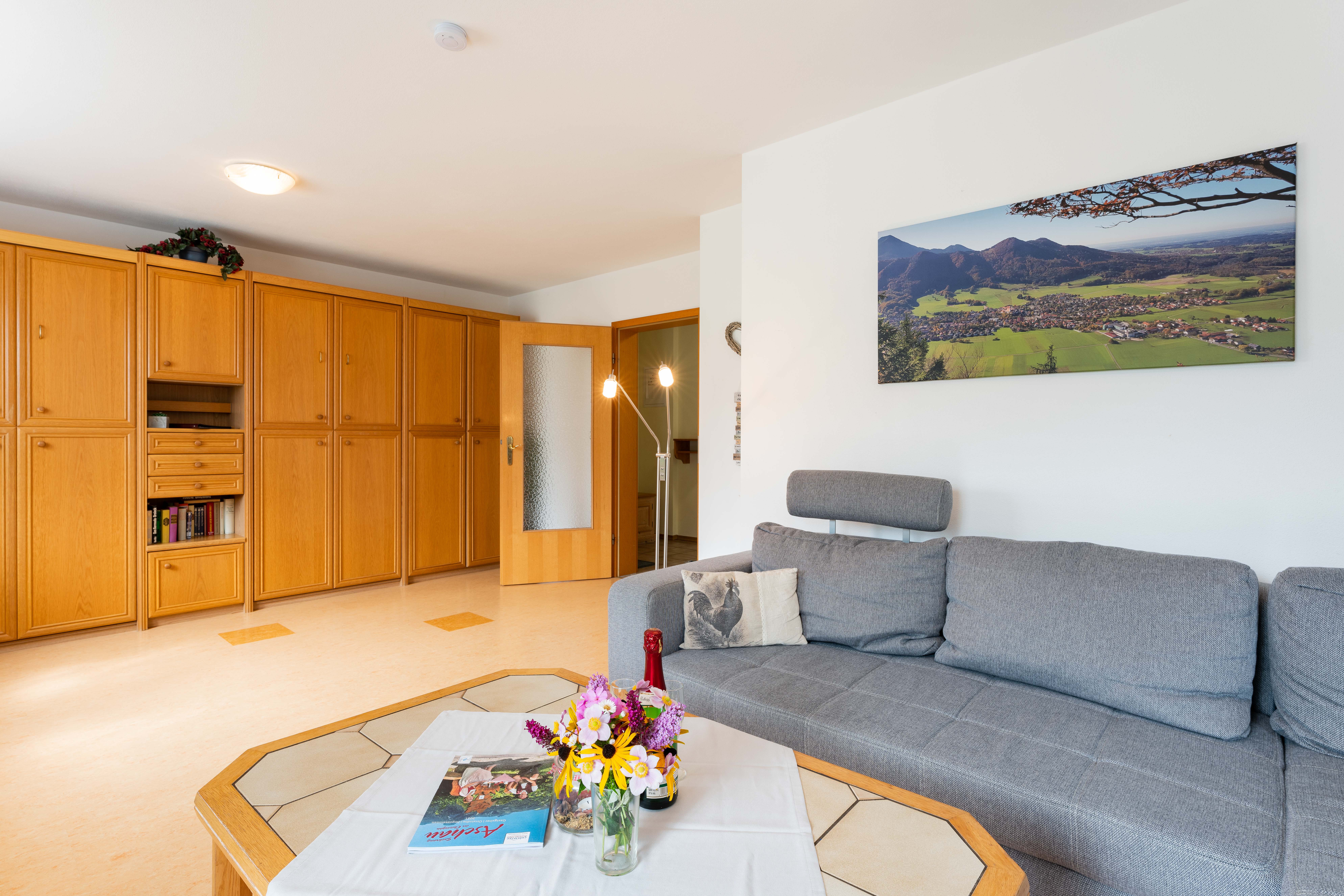 Helle geräumige Nichtraucher Ferienwohnung 65 qm, für 2 Personen mit Süd-Terrasse und herrlichem Blick auf die Berge. Ein separates Schlafzimmer mit Doppelbett. Großes Wohnzimmer mit einer gemütlichen Couch, Flat-Kabel-TV und kostenloses WLAN. Separate Küche mit Eckbank und Esstisch, Herd/Backofen, Kühlschrank/Tiefkühlfach und Geschirrspüler. Badezimmer mit Dusche/WC und Fön. Bettwäsche und Handtücher vorhanden. Diese Wohnung ist durch die Lage im Erdgeschoss behindertenfreundlich und kann mit Gehbehinderung gebucht werden. Es müssen aber im Eingangsbereich mind. 6 Stufen bewältigt werden. Das Badezimmer ist nicht Rollstuhlgerecht eingerichtet. Hunde und Haustiere sind nicht erlaubt.