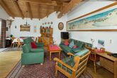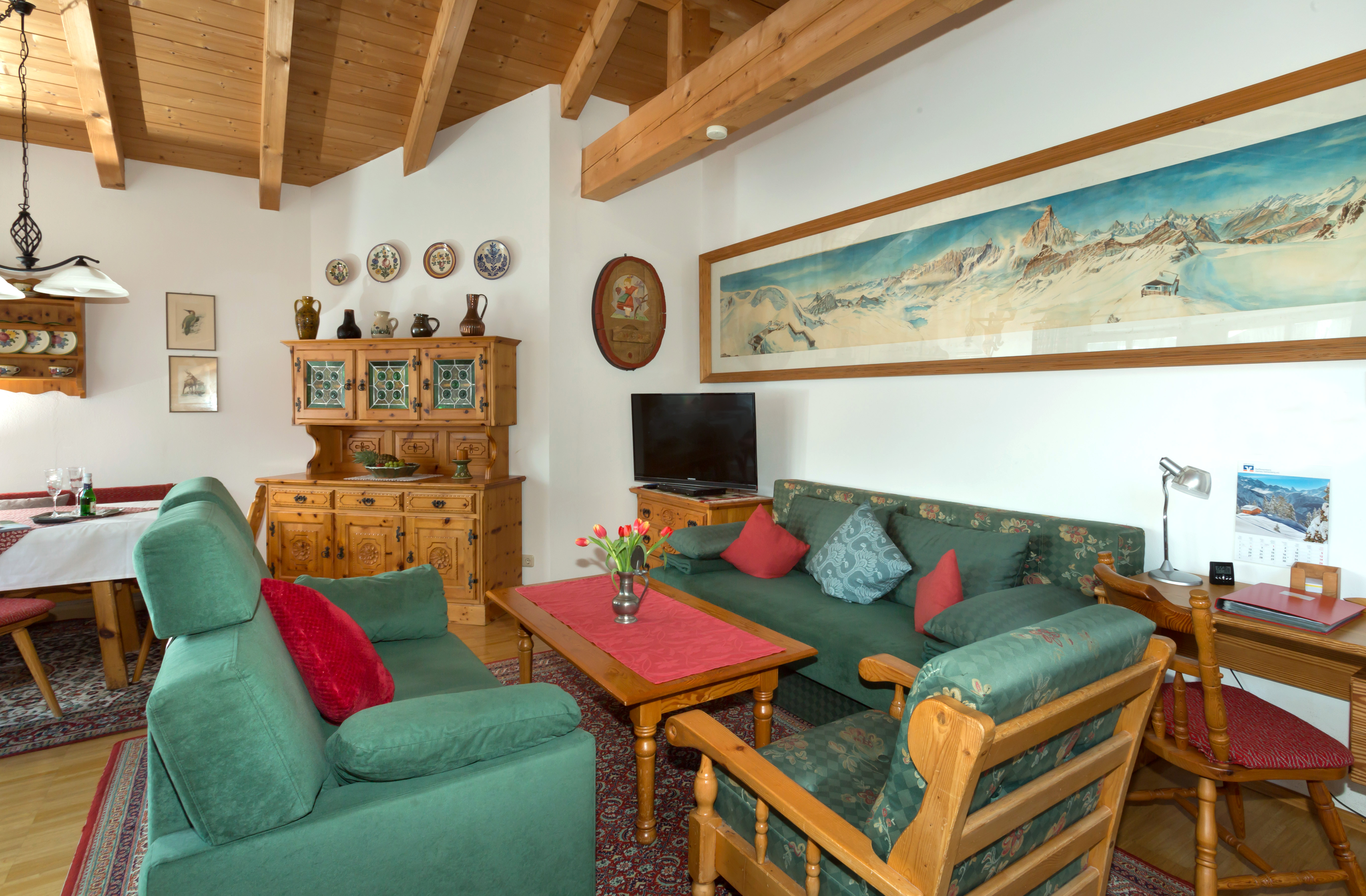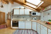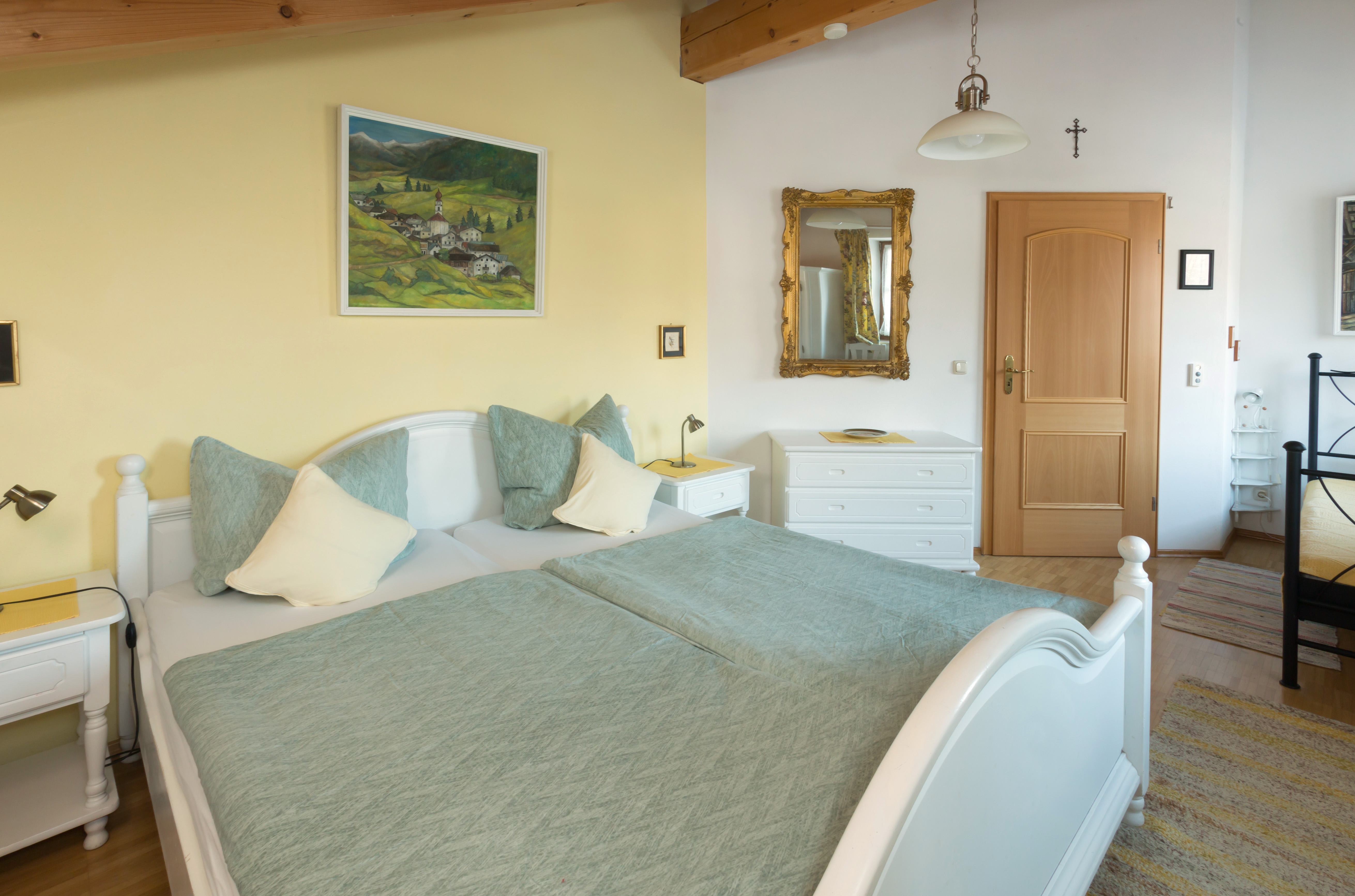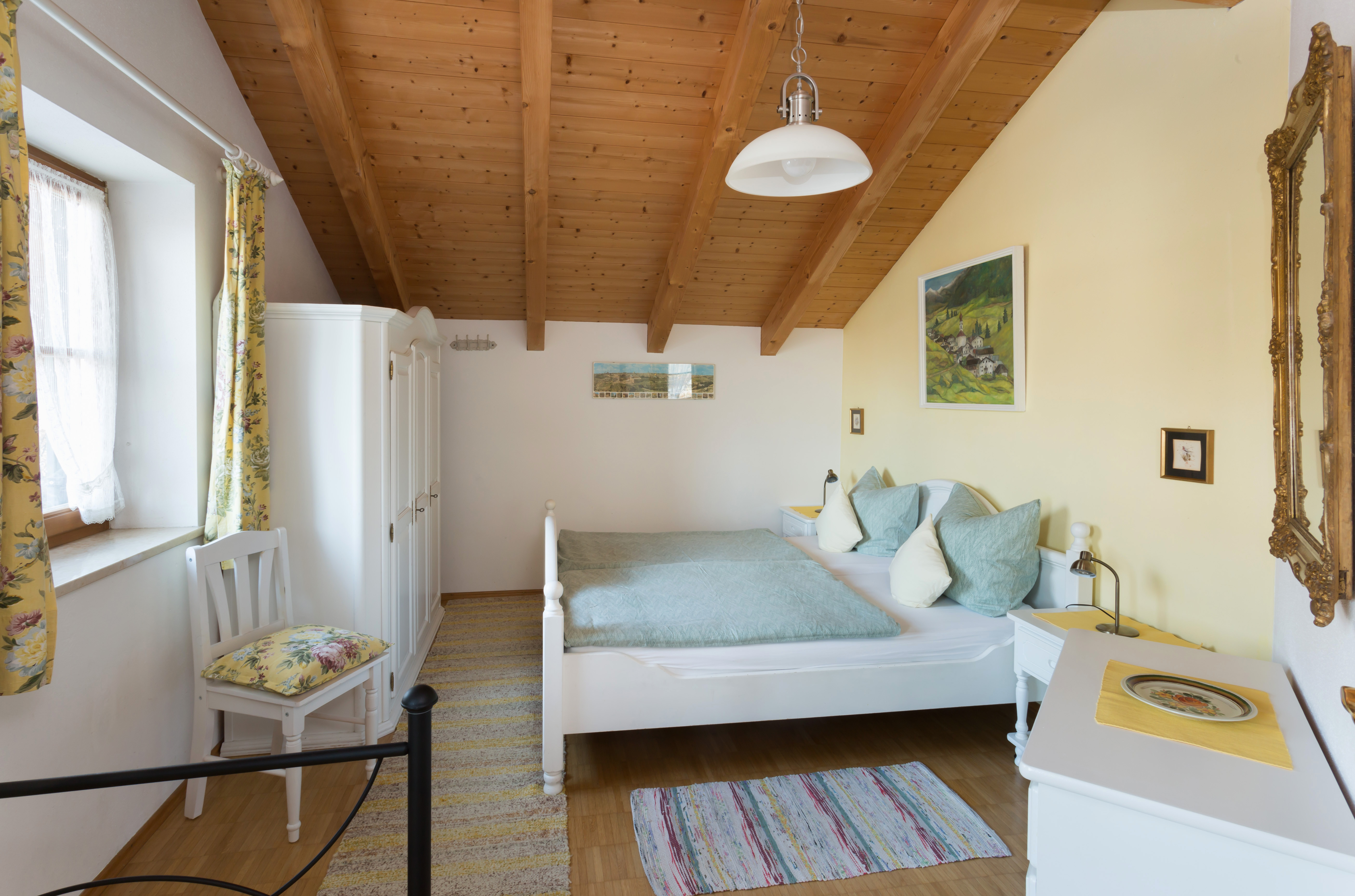 Sehr helle 70 qm Ferienwohnung II -Kampenwand- mit gehobener, kompletter Ausstattung, sichtbares Gebälk, Bodenheizung und Heizkörper. Sehr großes Wohnzimmer mit vollausgestatteter offener Küche, harmonisch im Wohnraum integriert mit Geschirrspüler, Ceranfeld, Backofen und allen Geräten, großer Tisch für 6 Personen, bequeme Doppel-Schlafcouch, SAT-TV, Radio mit CD, DVD-Player, Telefon, Internetanschluss mit D-LAN und kostenloses WLAN. Extra Schlafraum mit 3 Betten: Doppel- und Einzelbett. Großzügiges Badezimmer mit Dusche, Badewanne und WC. Süd-Balkon mit Balkonmöbel. Kinderbett, Kinderhochstuhl, Wickelauflage in jeder Wohnung. Gerne können Sie gegen Aufpreis einen Hund mitbringen. Waschmaschine und Wäschetrockner gegen Gebühr im Haus nutzbar. Ferienwohnung bedingt Behindertengerecht: breite Treppe und Türen, sehr gute Beweglichkeit, großzügige Wohnung, keine Schwellen, großes Bad. Auch für Rollstuhlfahrer Kinder, wenn Sie hochgetragen werden!