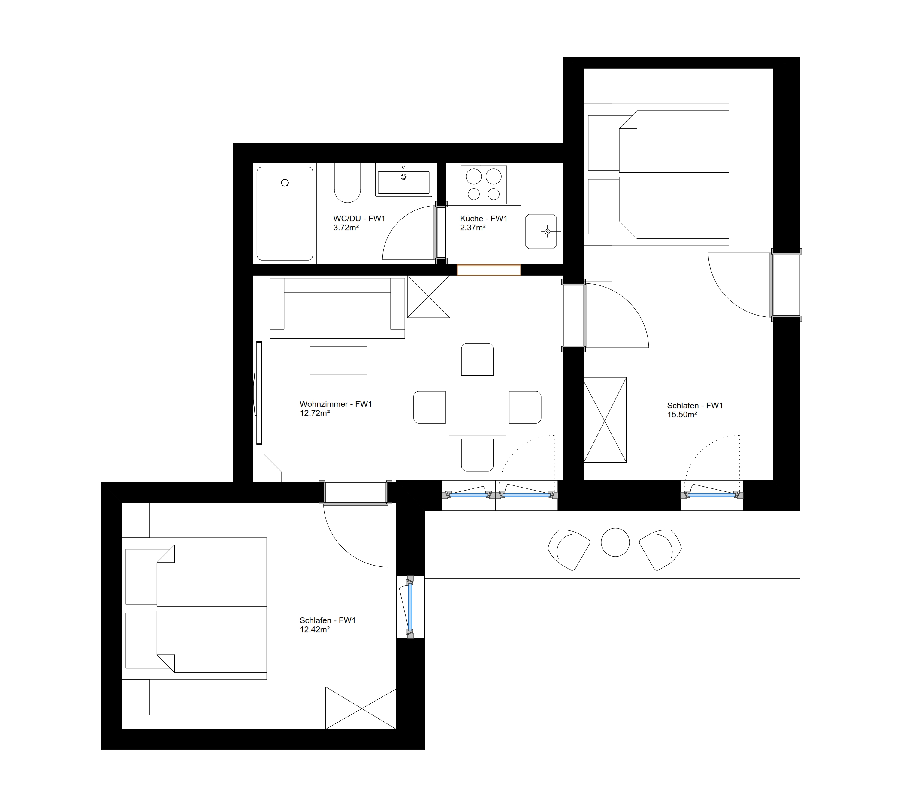 Unsere Ferienwohnung 1 liegt im 1. Stock auf der Südseite des Hofes, mit direktem Blick auf den Chiemsee und die Chiemgauer Alpen. Die Ferienwohnung ist teilweise über dem Stall, daher kann man besonders in der Nacht, das Leben mit Tieren auf dem Bauernhof etwas miterleben/hören. Sie ist gemütlich bäuerlich eingerichtet, mit kleiner Küche, Badezimmer, zwei Schlafzimmer mit je einem Doppelbett und einem Wohn- Essbereich. Sie hat auch einen Balkon, auf dem man die Abende gemütlich ausklingen lassen kann sowie das wunderschöne Panorama betrachten kann.