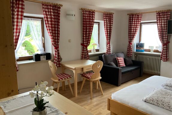 Wollen Sie einen schönen Urlaub auf einem Bauernhof mit grandioser Aussicht über das Bayerische Meer und auf die Chiemgauer Alpen? Dann melden Sie sich. Wir haben fünf Ferienwohnungen im Haus und im Nebengebäude befindet sich auch noch eine Ferienwohnung. Für Kinder haben wir ein Trampolin, Sandkasten, Spielhaus, Tischtennisplatte, Fußballtor, große Spielwiese und eine tolle Kinderseilbahn. Auch mehrere Tiere haben wir am Hof wie, Schafe, Katzen, Meerschweinchen, Hund, Hühner, Hasen und Kühe. Haustiere sind auf Anfrage und gegen Gebühr erlaubt. Ein Parkplatz ist ebenfalls vorhanden. Für schöne Abende, haben wir eine kleine Grillhütte und eine Feuerstelle die jederzeit benutzt werden darf. Für unsere Radfahrer gibt es auch einen Unterstellplatz/Abstellplatz für die Fahrräder. Über eine Anfrage/Buchung würden wir uns sehr freuen. Bitte beachten Sie, dass von Herbst bis Frühling nur Vermietung auf Anfrage statt findet.Wir empfehlen den Abschluss einer Reiserücktrittsversicherung, da wir, sollte ein stornierter Termin nicht neu belegt werden können, eine Stornogebühr von 90% der Gesamtkosten erheben. Bei Neubelegung fällt eine Bearbeitungsgebühr von 10% der Gesamtkosten an.