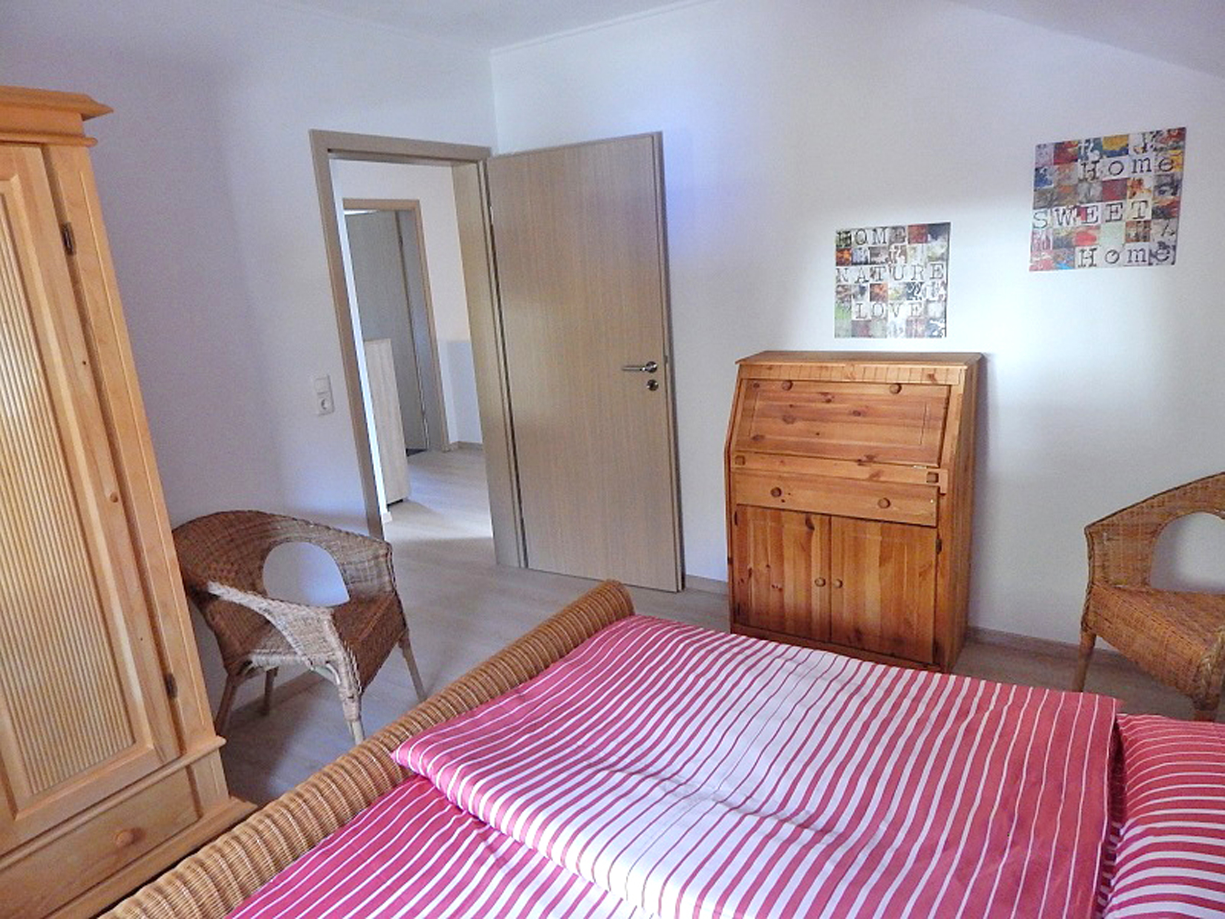 Die großzügige Ferienwohnung Chiemsee ist eine Neubau-Komfortwohnung in einem Zweifamilienhaus mit Gartenanteil, Carport und Balkon. Die Wohnung verfügt über eine gehobene Ausstattung mit Parkettboden, Kaminofen, kostenloses WLAN und einer Waschmaschine in moderner Ausführung mit Wohlfühl-Effekt. Die drei separaten Schlafzimmer, zwei Schlafzimmer sind mit Doppelbetten und ein Schlafzimmer mit zwei Einzelbetten ausgestattet. Gerne darf in diese Ferienwohnung gegen Aufpreis max. ein Hund mitgebracht werden.