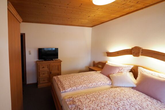 Unsere 2 komfortabel eingerichteten Doppelzimmer liegen im 1.OG und sind mit Dusche und WC ausgestattet.