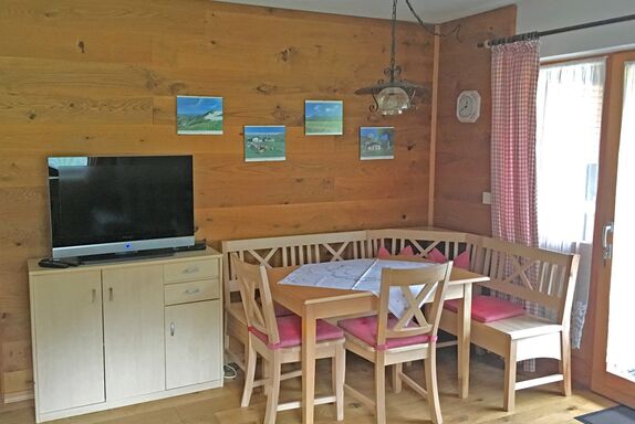 Nichtraucher-Ferienwohnung, bedingt Behindertengerecht, ebenerdiger Eingang über die Terrasse möglich. Wohnküche mit ausziehbarem Schlafsofa, Essecke, SAT-TV und kostenloses WLAN. Separates Schlafzimmer mit Doppelbetten (auch getrennt stellbar), extra WC und kleine Diele. Schöne Terrasse mit Liegewiese und Sitzgruppe im Garten mit Grillmöglichkeit. Hunde und Haustiere dürfen nicht mitgebracht werden.