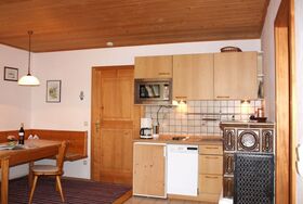 Gemütliche, komfortable Ferienwohnung, 50 qm mit Wohnküche und zusätzlichem Kachelofen und Balkon, zwei getrennte Schlafzimmer, gut ausgestattete Küche mit Spülmaschine. Bad mit Dusche/WC, Handtücher, Bettwäsche und Endreinigung inclusive. SAT-TV, WLAN kostenlos, Radio, keine Hunde.