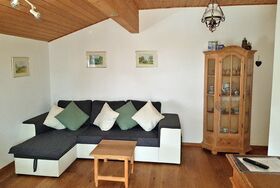Nichtraucher Ferienwohnung 45 qm im 1. Stock mit Ost-Balkon. Wohnzimmer mit gemütlicher Couch, Flat-SAT-TV, Radio und Essecke. Separate kleine Küche mit Zwei-Platten-Herd und kleinem Ofen, Kühlschrank/Tiefkühlfach, Toaster, Wasserkocher und Kaffeemaschine. Separates Schlafzimmer mit zwei getrennten Einzelbetten. Badezimmer mit Dusche/WC und Fön. Hunde und Haustiere dürfen nicht mitgebracht werden.
