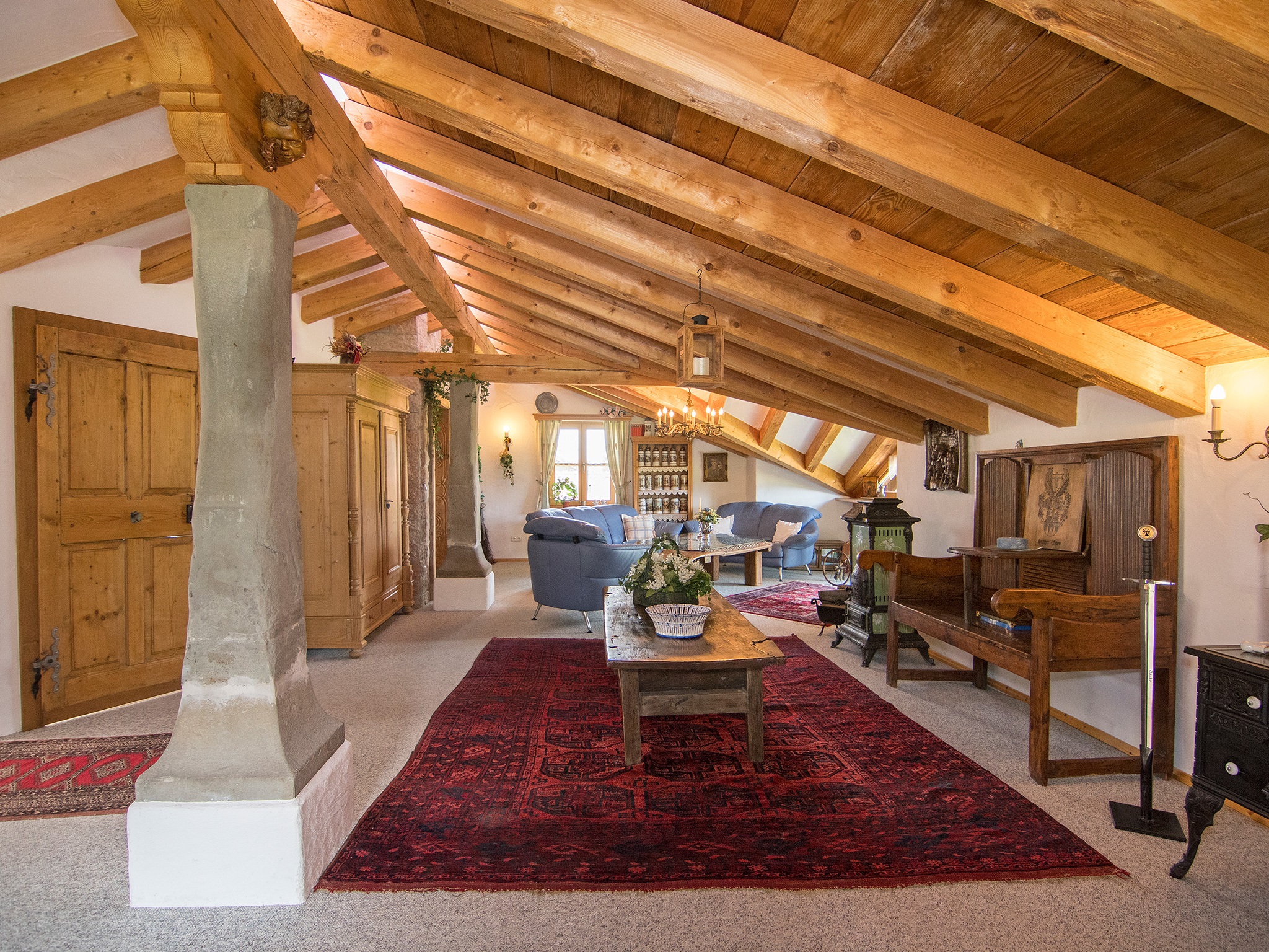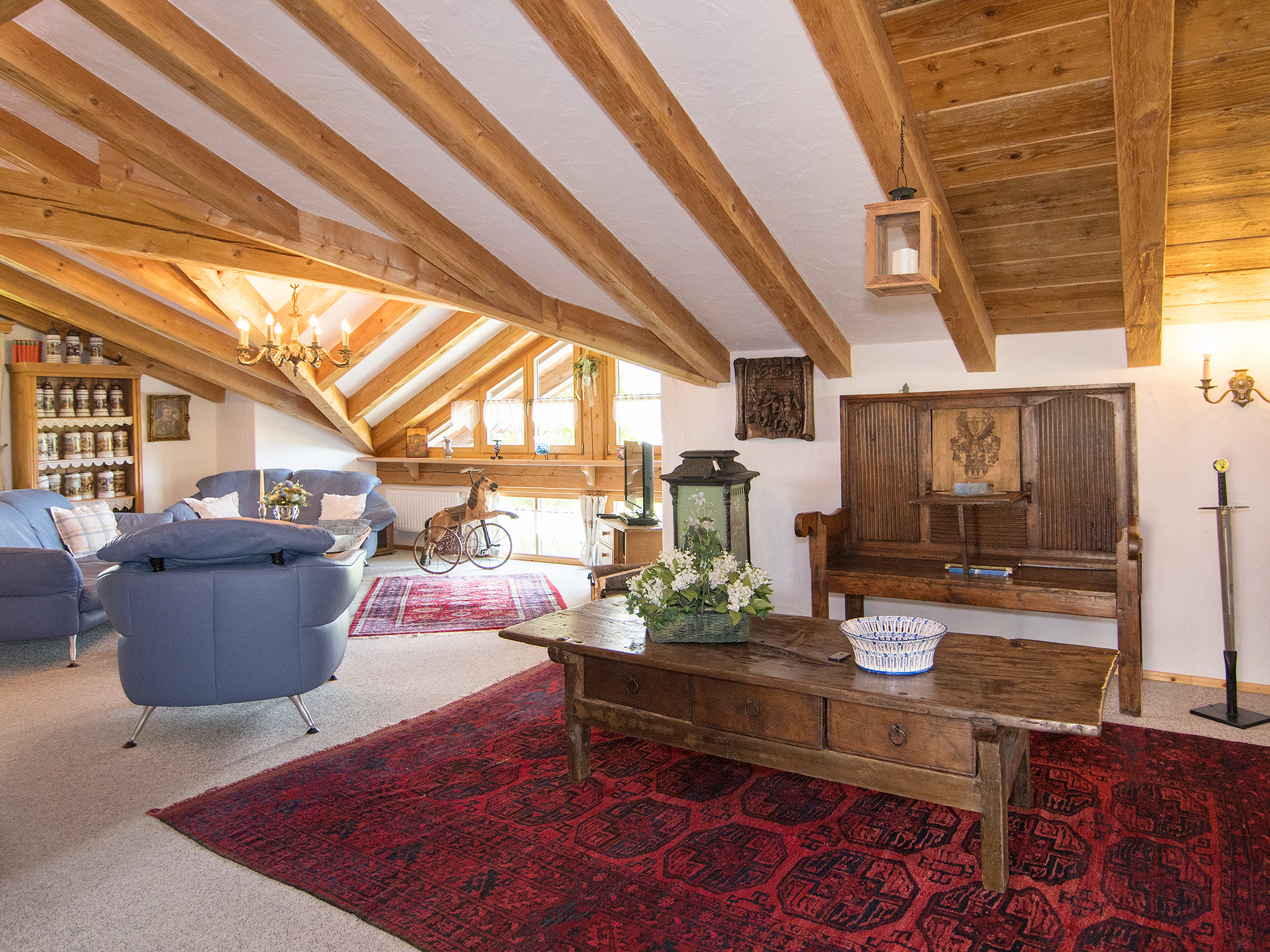 Die 5* Sterne Wohnung befindet sich im gesamten Dachgeschoss, ca. 100 m² Wohnfläche mit Südblick zum Kammerköhr, Winklmoosgebirge. Zur Wohnung gehört ein 8 x 2,5 m Balkon mit Süd-Westblick zum Wilden Kaiser und zur Hochplatte (1587m).