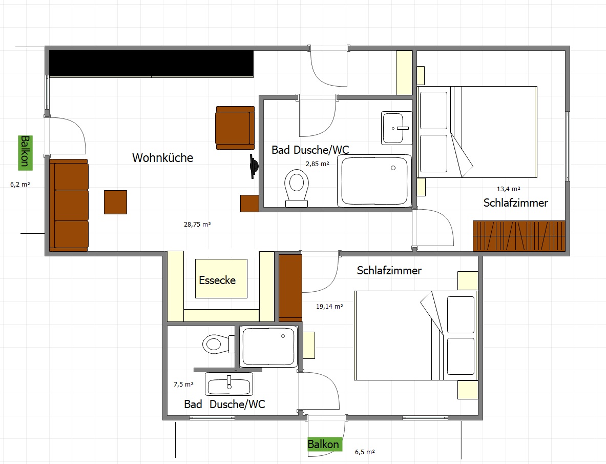 Die Wohnung hat ca. 75qm und liegt im 1.Stock.