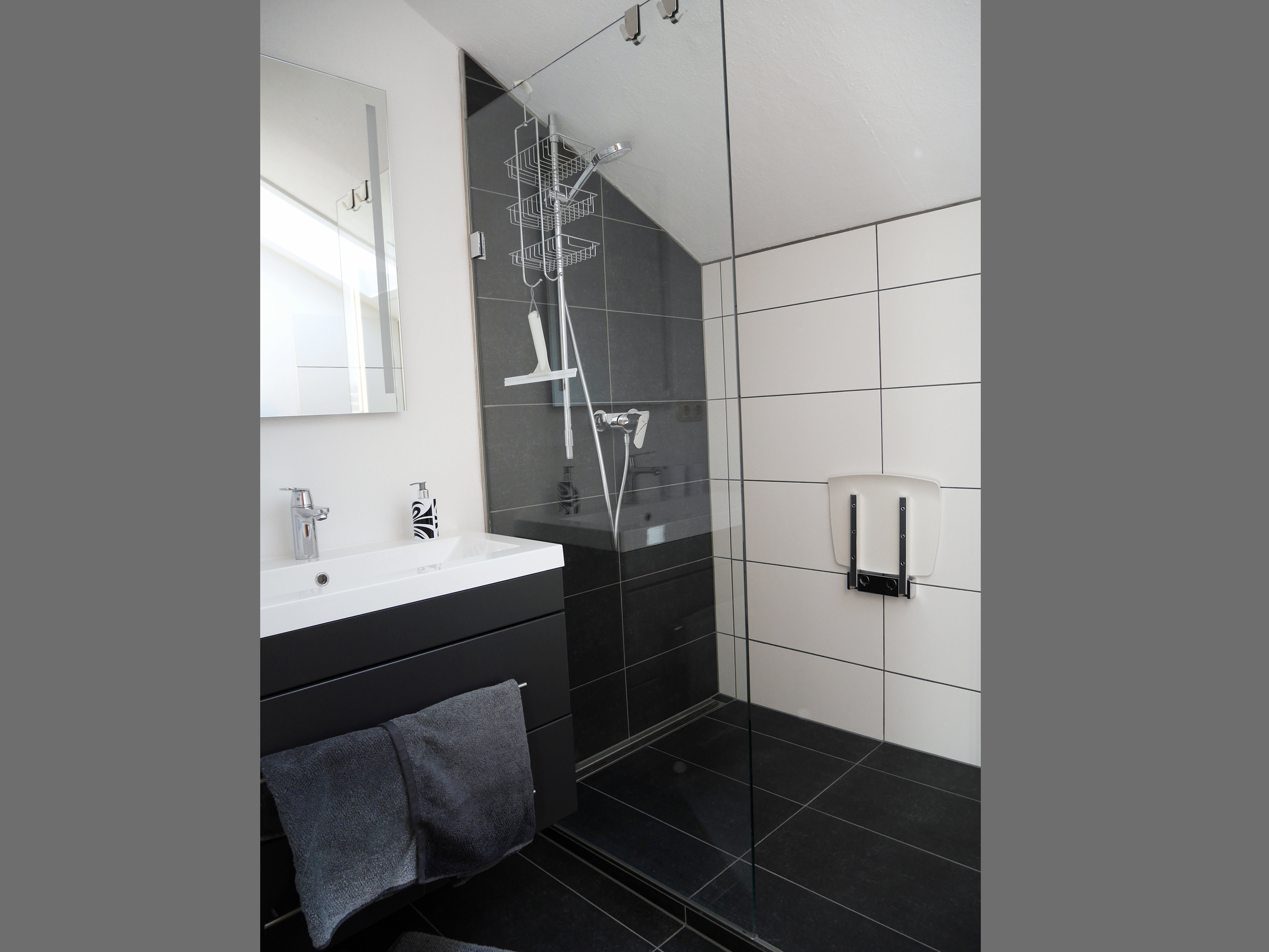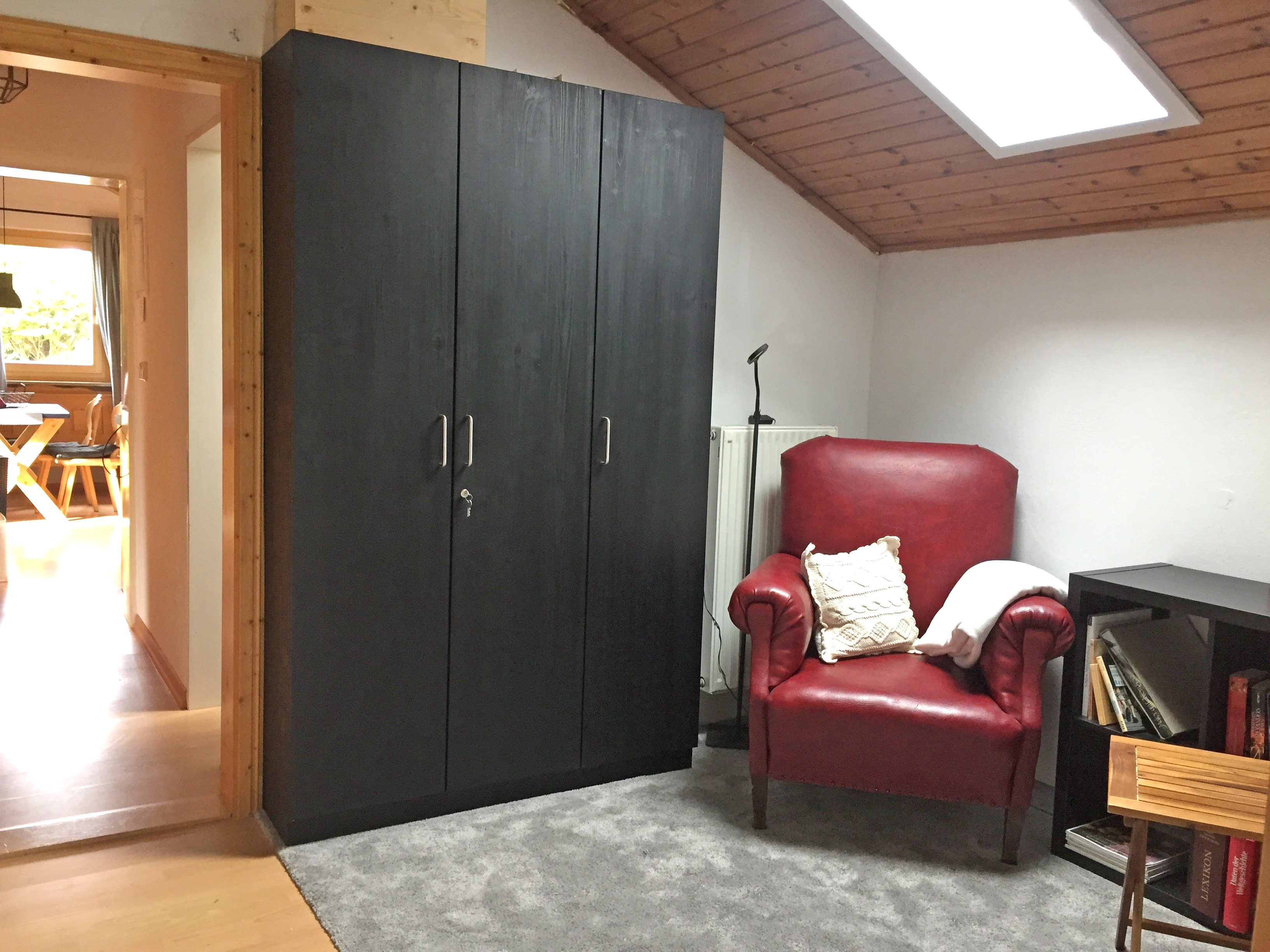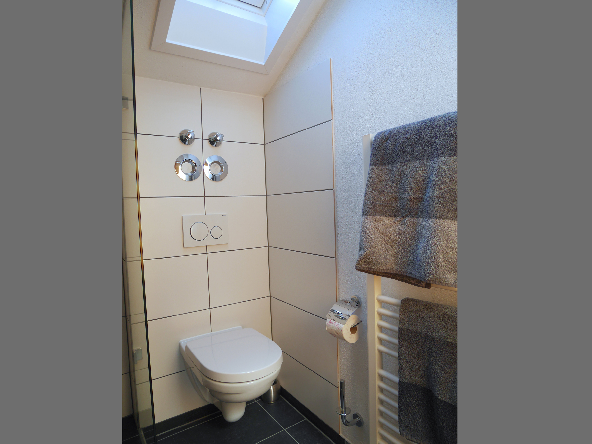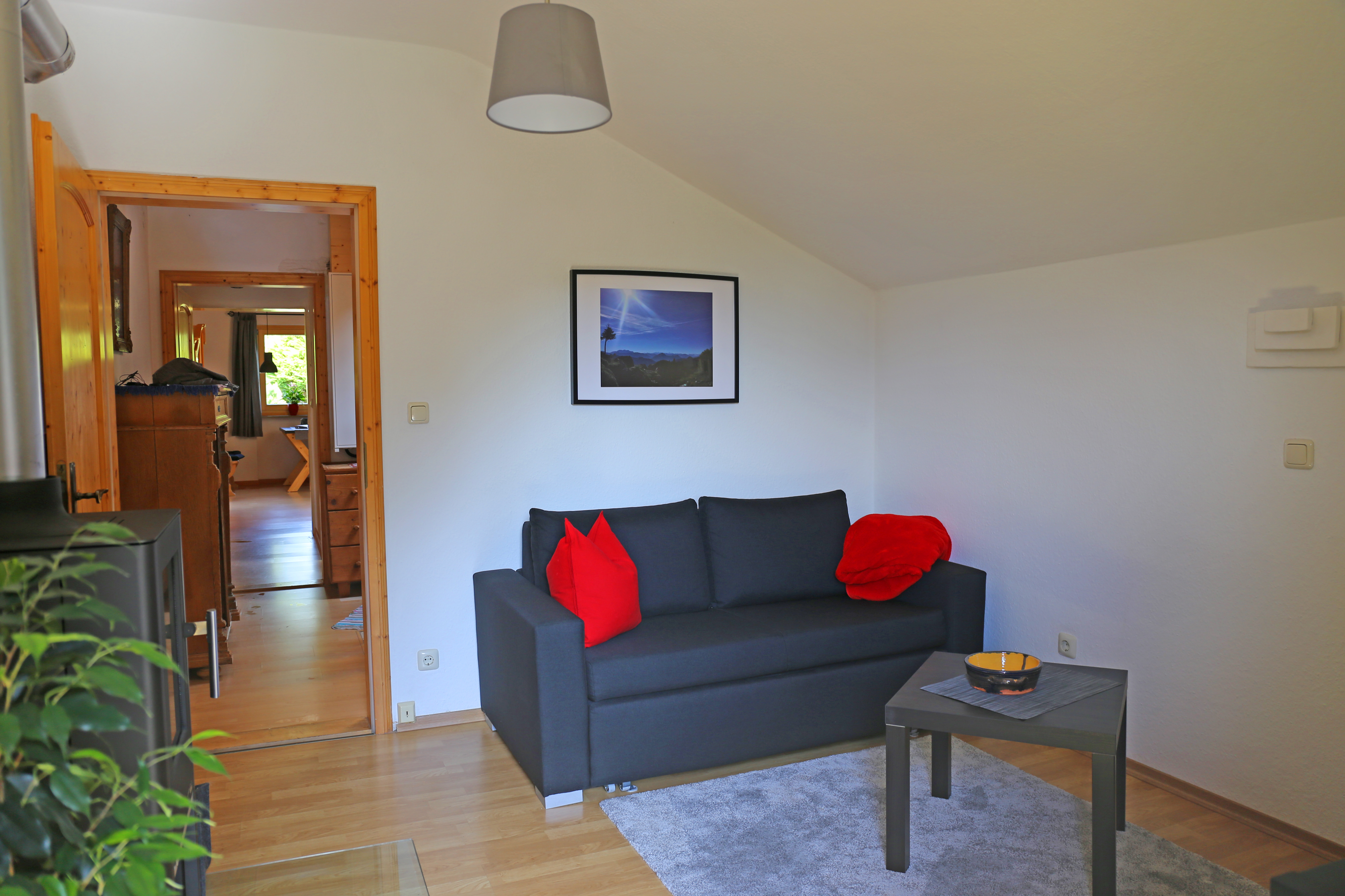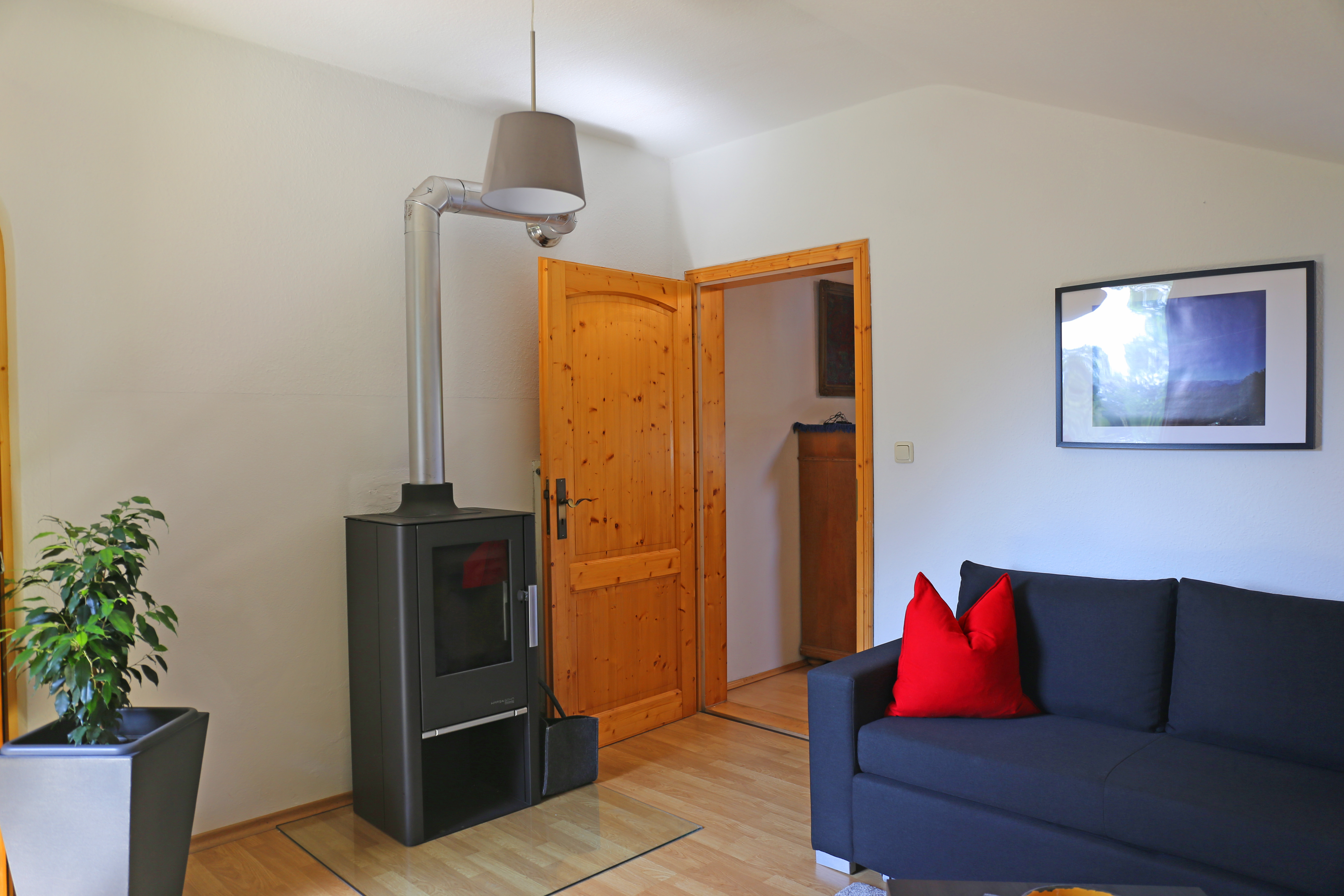 Der Aufgang in die 88 qm Wohnung führt über eine große West-Terrasse mit separatem Wohnungseingang. Die Wohnung verfügt über 4,5 Zimmer mit zwei Bädern, Westterrasse und Südbalkon und erstreckt sich über den ganzen ersten Stock eines Einfamilienhauses. Küche mit Vollausstattung, wie Kühl- und Gefrierschrank, Spülmaschine, Herd mit Backofen und Ceranfeld, Mikrowelle mit Mikrowellengeschirr, Nespresso Kaffeemaschine, Filterkaffeemaschine, Toaster, Wasserkocher und inklusive aller notwendigen Kochutensilien, einem großzügig gestalteten Essbereich sowie einem gemütlichen Ohrensessel zum Relaxen. Ein kleiner weiterer Raum, welcher als Bibliothek dient, lädt zum Entspannen ein, und verfügt über eine angenehme, entspannende Sitzgelegenheit. Wohnzimmer mit ausziehbarer Schlafcouch, Schwedenofen, Flachbild TV, kostenloses WLAN und direkter Zugang auf den Südbalkon. Zwei Schlafzimmer mit Doppelbetten: 1 x 2,00 m x 2,00 m und im zweiten 1,80 m x 2,00 m. Ein großes Bad mit Dusche, Duschsitz, WC und ein kleineres Bad beim zweiten Schlafzimmer mit Dusche/WC und Waschbecken. Bettwäsche und Handtücher sind vorhanden. Starterset für unsere Gäste: Kaffeekapseln, Tee, Zucker, Öl, Essig, Salz, Pfeffer, Toilettenpapier und Seife. Elektrogrill, Parkplatz direkt vor dem Haus, Garage für Abstellen der Räder, Garage auch separat anzumieten für Autounterbringung.