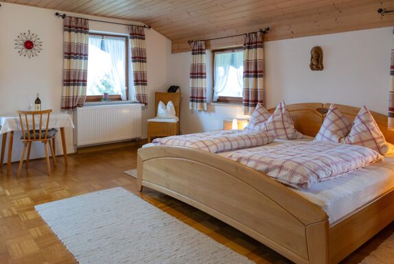 Unser gepflegter, familienfreundlicher Bauernhof liegt in Grabenstätt/Höring, inmitten der malerischen Landschaft des Chiemgaus. Von hier aus können Sie den herrlichen Blick auf das Bergpanorama der Alpen genießen. Auf unserem gemütlichen Hof erwarten Sie komfortable Ferienwohnungen in freundlichem Ambiente. Kurz gesagt: Hier finden Sie alles für erholsame und unvergessliche Urlaubstage in Bayern. Für Kinder gibt es hier viel zu entdecken und erleben. Unser großer Garten lädt zum Spielen und Austoben ein und es gibt viele Kinderspielgeräte. Gerne können unsere kleinen Gäste auch bei der Hofarbeit zuschauen und mithelfen. Ob groß, ob klein - Sie sind auf unserem Hof immer herzlich willkommen! Ihre Familie Schmid