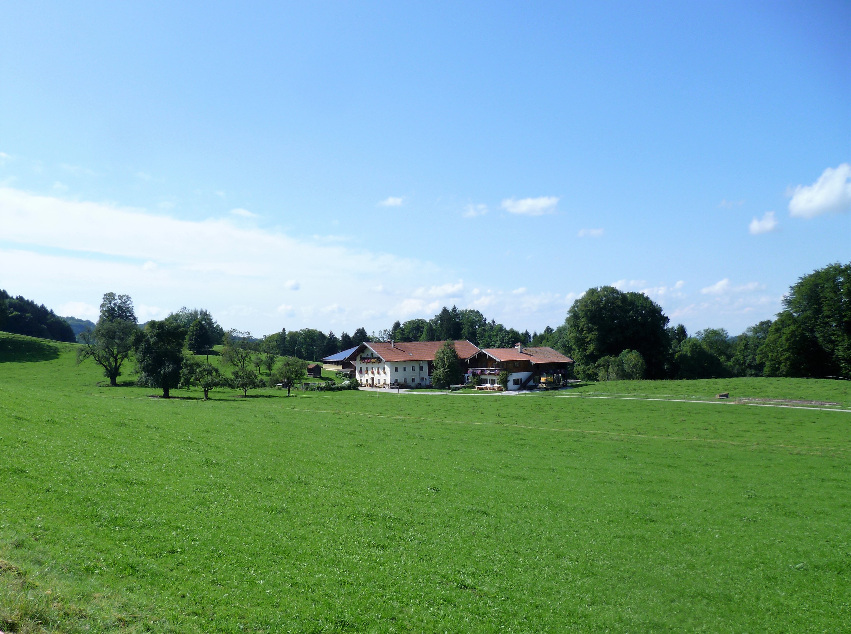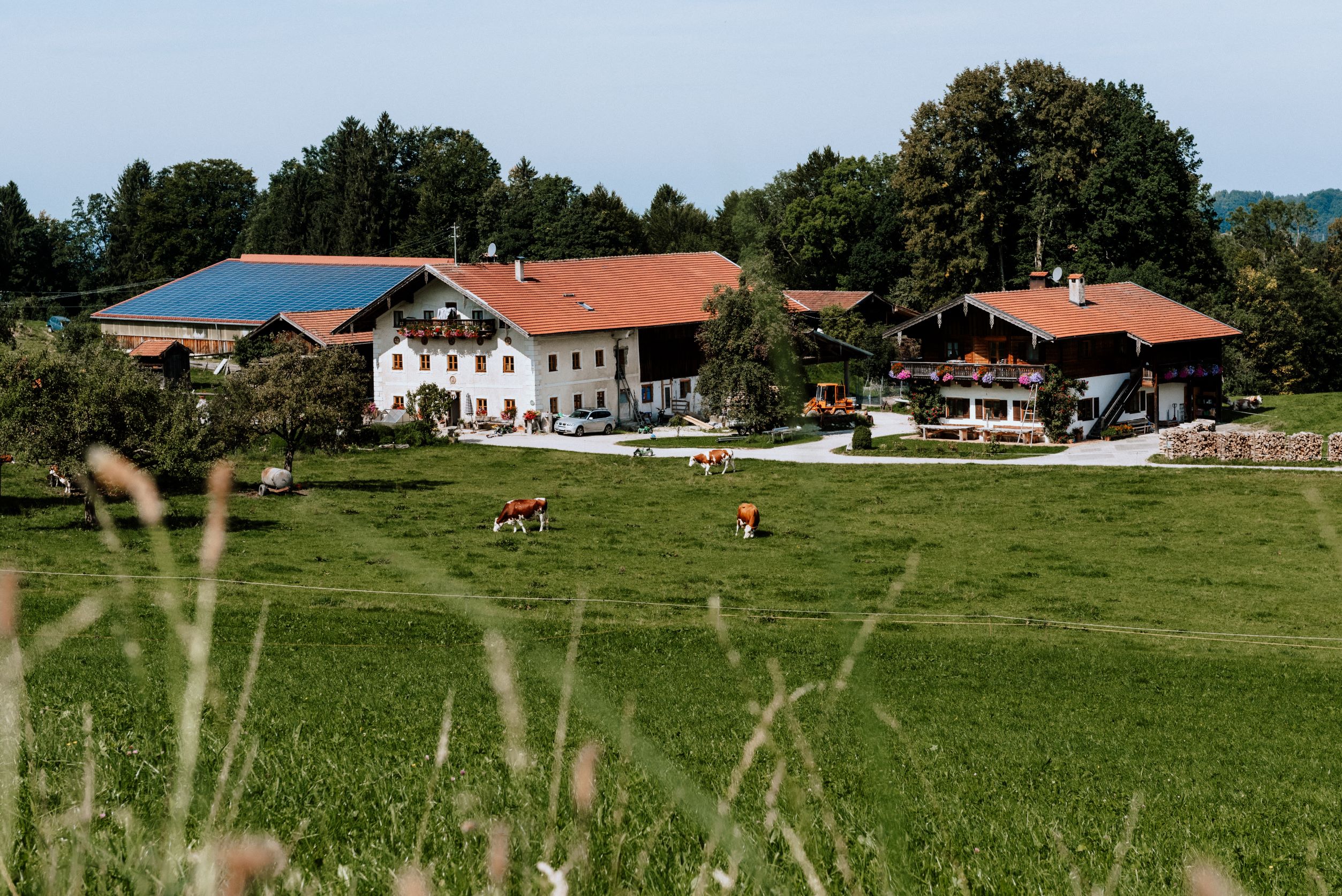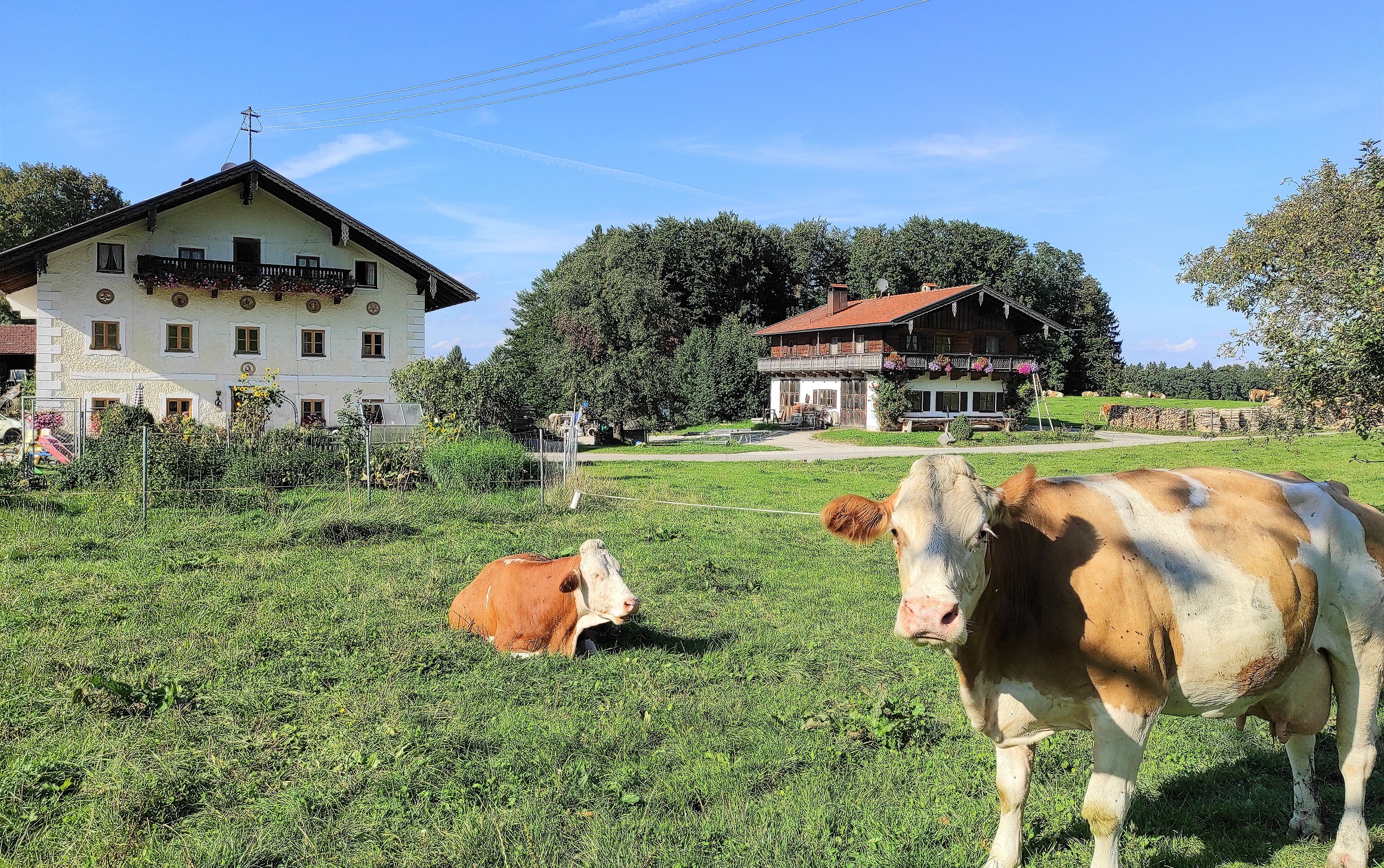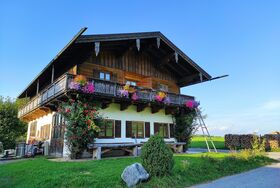 Herzlich willkommen auf unserem Berg-Bauernhof in absolut freier, ruhiger Alleinlage mit Blick auf den Berg Hochries, 3 km außerhalb von Frasdorf. Wir, die Bauersfamilie Franz und Christiane samt unseren Kindern Franzl, Lisal, Kathl und Fini leben hier mit unseren 30 Milchkühen, Kälbern, Hühnern und Schafen. Es ist viel Platz um's Haus, um mit Tretfahrzeugen, Fahrrädern und Ketcars herumzusausen. Gerne nehmen wir euch mit in den Stall und zeigen euch unsere Landwirtschaft. Die Ferienwohnungen befinden sich separat im Zuhaus mit überdachtem Freisitz.