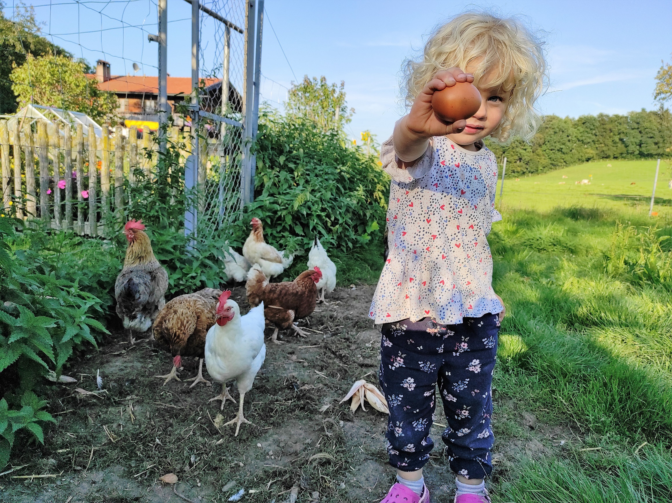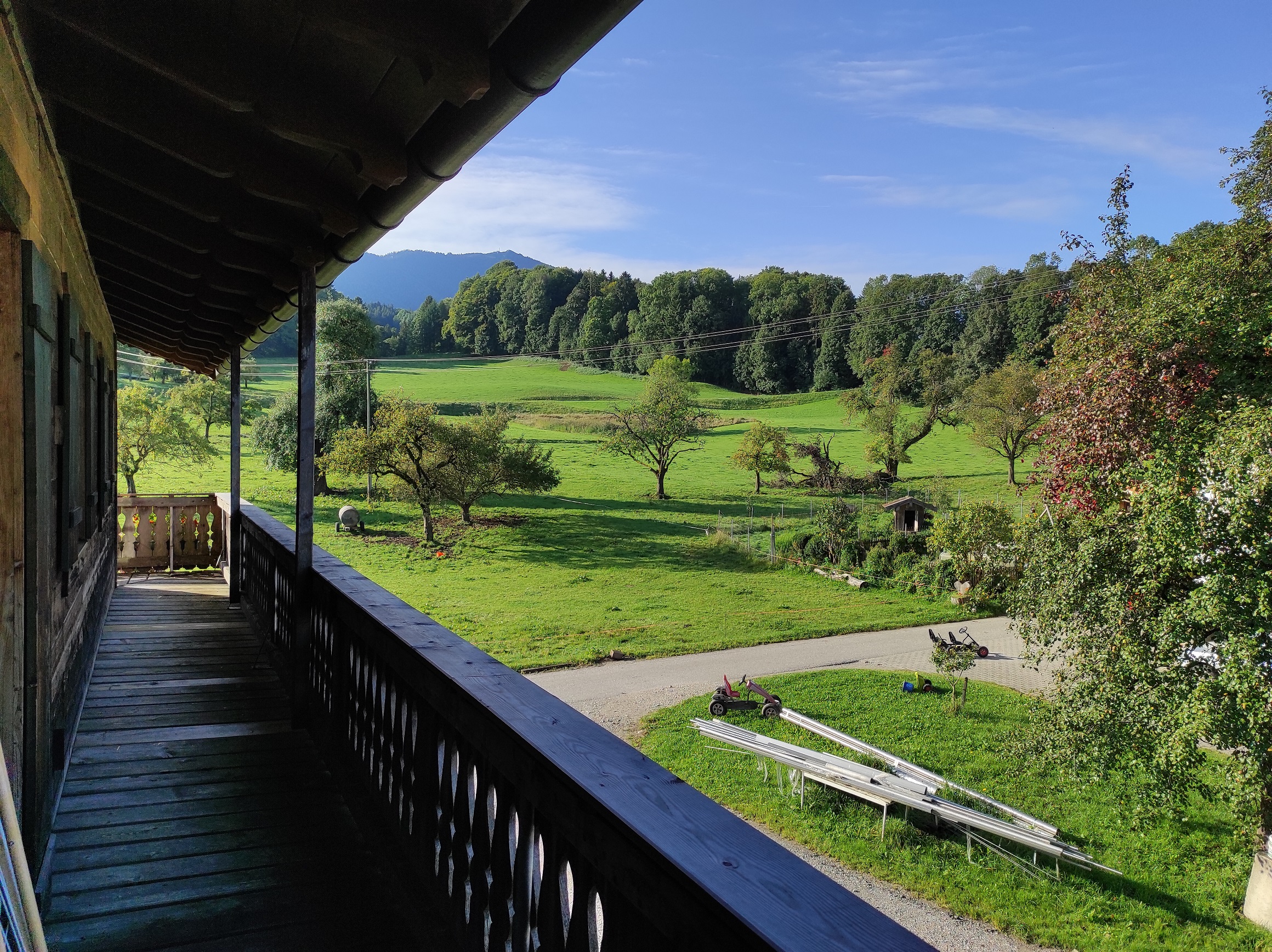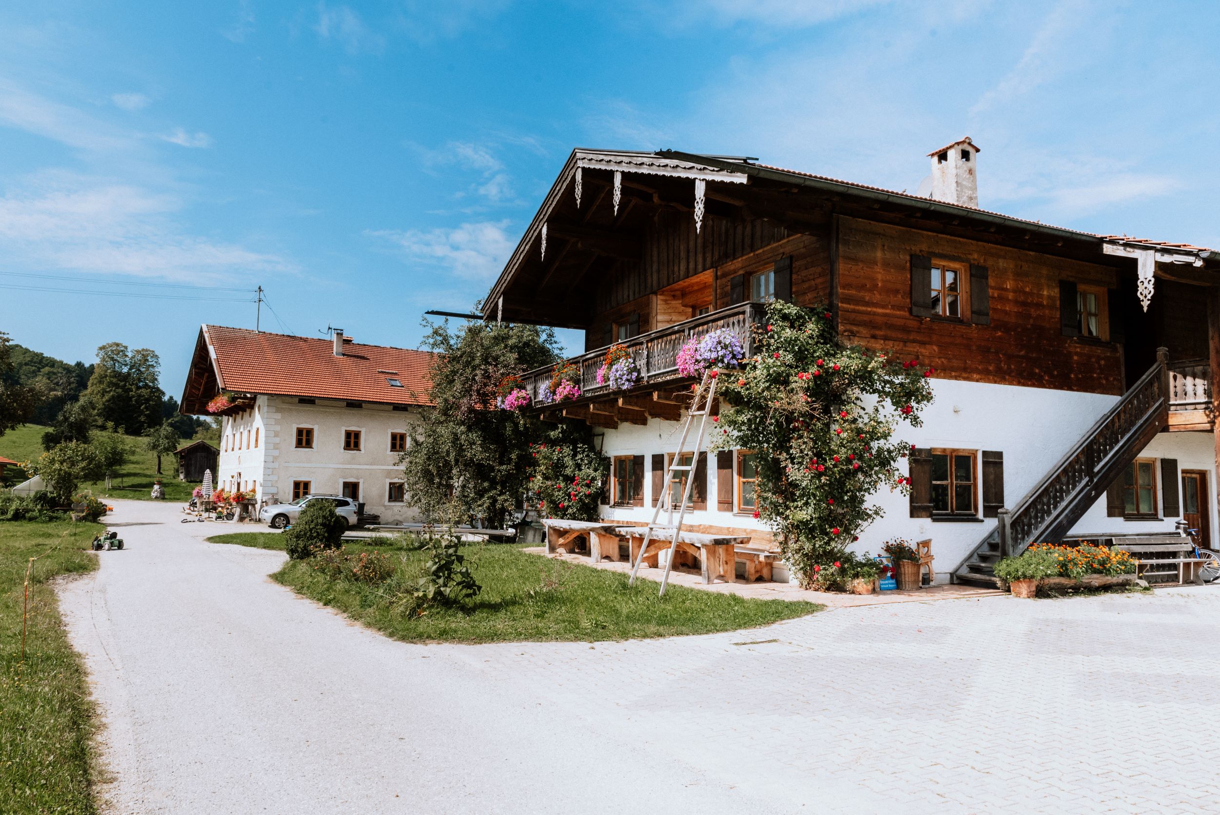 Herzlich willkommen auf unserem Berg-Bauernhof in absolut freier, ruhiger Alleinlage mit Blick auf den Berg Hochries, 3 km außerhalb von Frasdorf. Wir, die Bauersfamilie Franz und Christiane samt unseren Kindern Franzl, Lisal, Kathl und Fini leben hier mit unseren 30 Milchkühen, Kälbern, Hühnern und Schafen. Es ist viel Platz um's Haus, um mit Tretfahrzeugen, Fahrrädern und Ketcars herumzusausen. Gerne nehmen wir euch mit in den Stall und zeigen euch unsere Landwirtschaft. Die Ferienwohnungen befinden sich separat im Zuhaus mit überdachtem Freisitz.