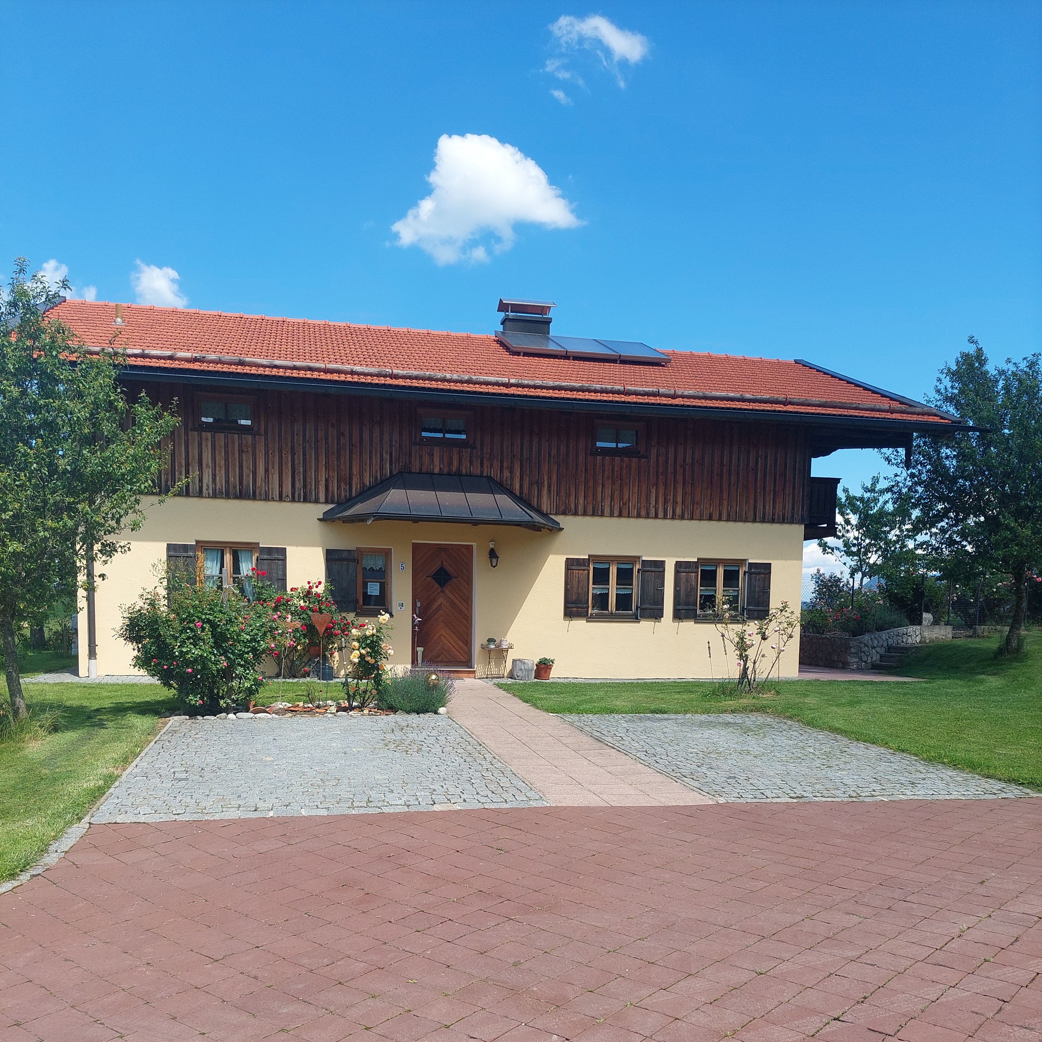 Einfamilienhaus mit 3 Ferienwohnungen in wunderbarer, ruhiger Alleinlage ca. 3 km außerhalb von Frasdorf. Außergewöhnlich schöner Bergblick auf die Chiemgauer Bergkette, Kleintiere am Hof, Garten, Grillmöglichkeit, WLAN kostenlos.Die Ferienwohnungen sind ein idealer Ausgangspunkt für Ausflüge. Wandern Sie auf die Berge direkt vor der Haustüre oder fahren Sie mit einer der nahen Seilbahnen auf Kampenwand, Hochries oder Wendelstein, herrliche Aussichten auf das Voralpenland und auf viele Berggipfel bis zum Großglockner sind bei gutem Wetter garantiert. Der nahe Chiemsee mit Schloss Herrenchiemsee und der idyllischen Fraueninsel, aber auch München, Salzburg, Rosenheim, Kufstein und Berchtesgaden mit Königsee laden zum Erkunden ein und sind von Frasdorf aus bestens erreichbar. Zahlreiche sportliche Aktivitäten und kulturelle Angebote wie Baden, Kajakfahren, Surfen, Segeln, Golf, Paragliding, Klettern (Hochseilgarten), Minigolf, sowie Museen, Konzerte, Dorf- und Seefeste bietet die nahe Region.