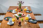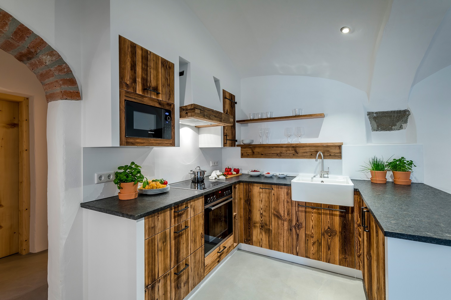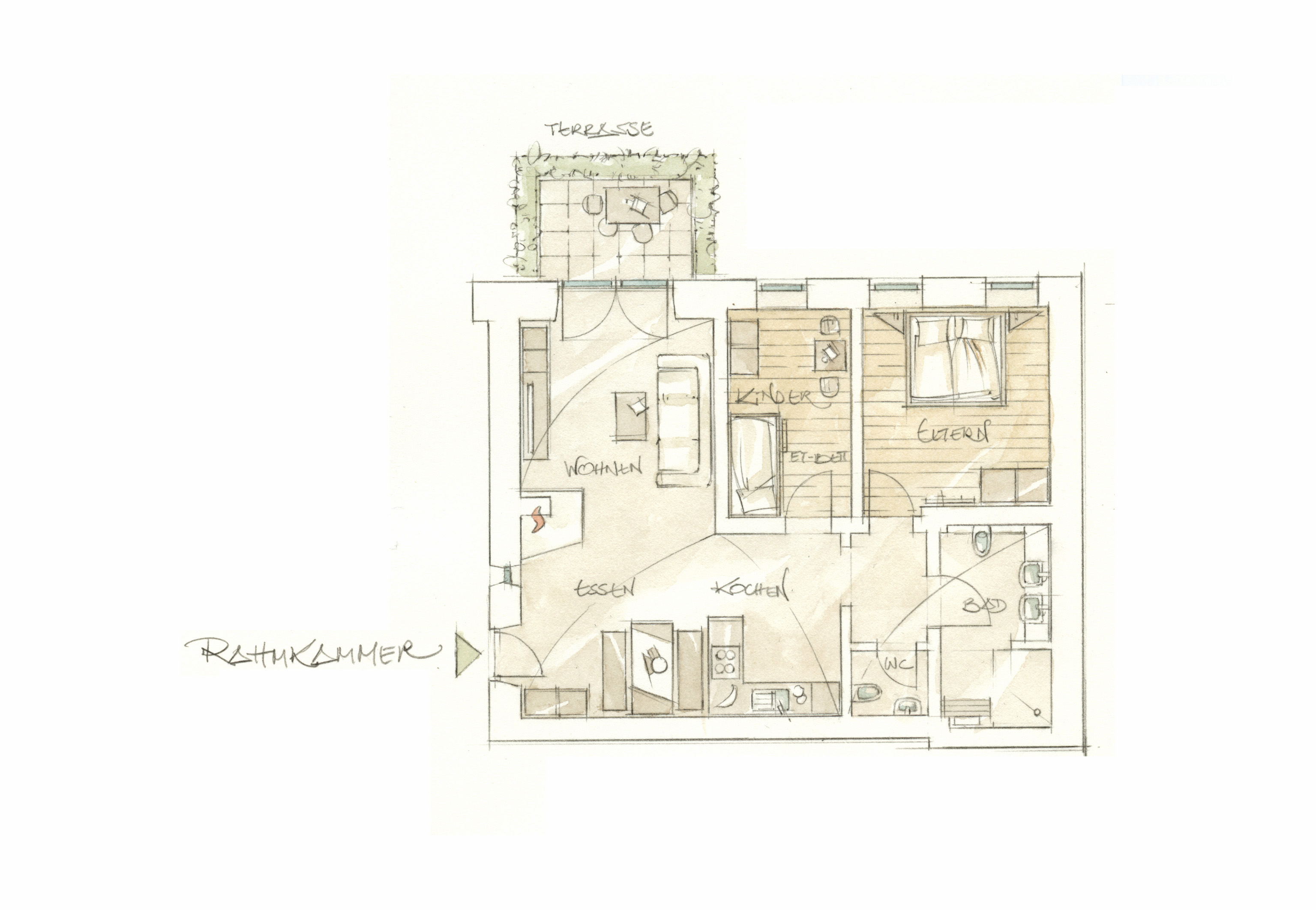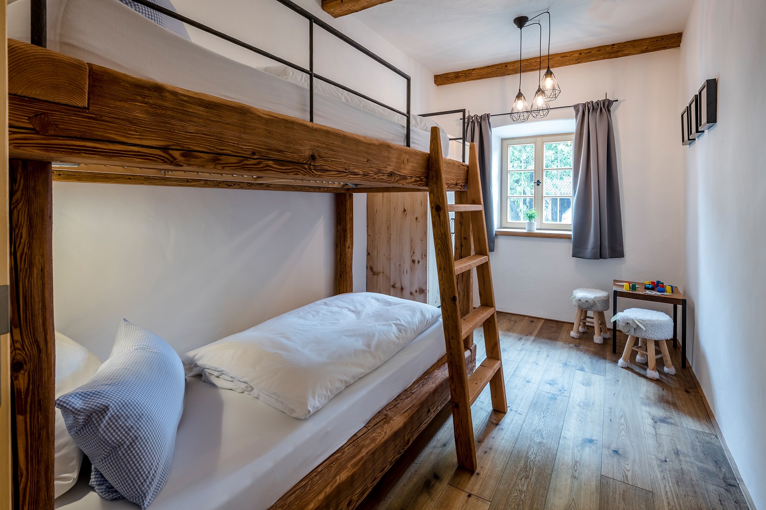 Die Rahmkammer ist unsere Erdgeschoß-Ferienwohnung. Ideal ist sie für zwei Erwachsene und zwei Kinder, denn im Kinderschlafzimmer steht ein tolles Stockbett (auch für Erwachsene geeignet), damit auch noch Platz zum Spielen bleibt. Auch die Eltern haben ein kuscheliges Schlafzimmer mit einem Doppelbett. Im Bad wurde neben WC und Doppelwaschtisch eine ebenerdige große Dusche eingebaut. Nebenan gibt es ein weiteres separates WC. Kochen, Essen und Wohnen ist im großen Wohnbereich untergebracht und ein kleiner Freisitz komplettiert die Wohnung.
