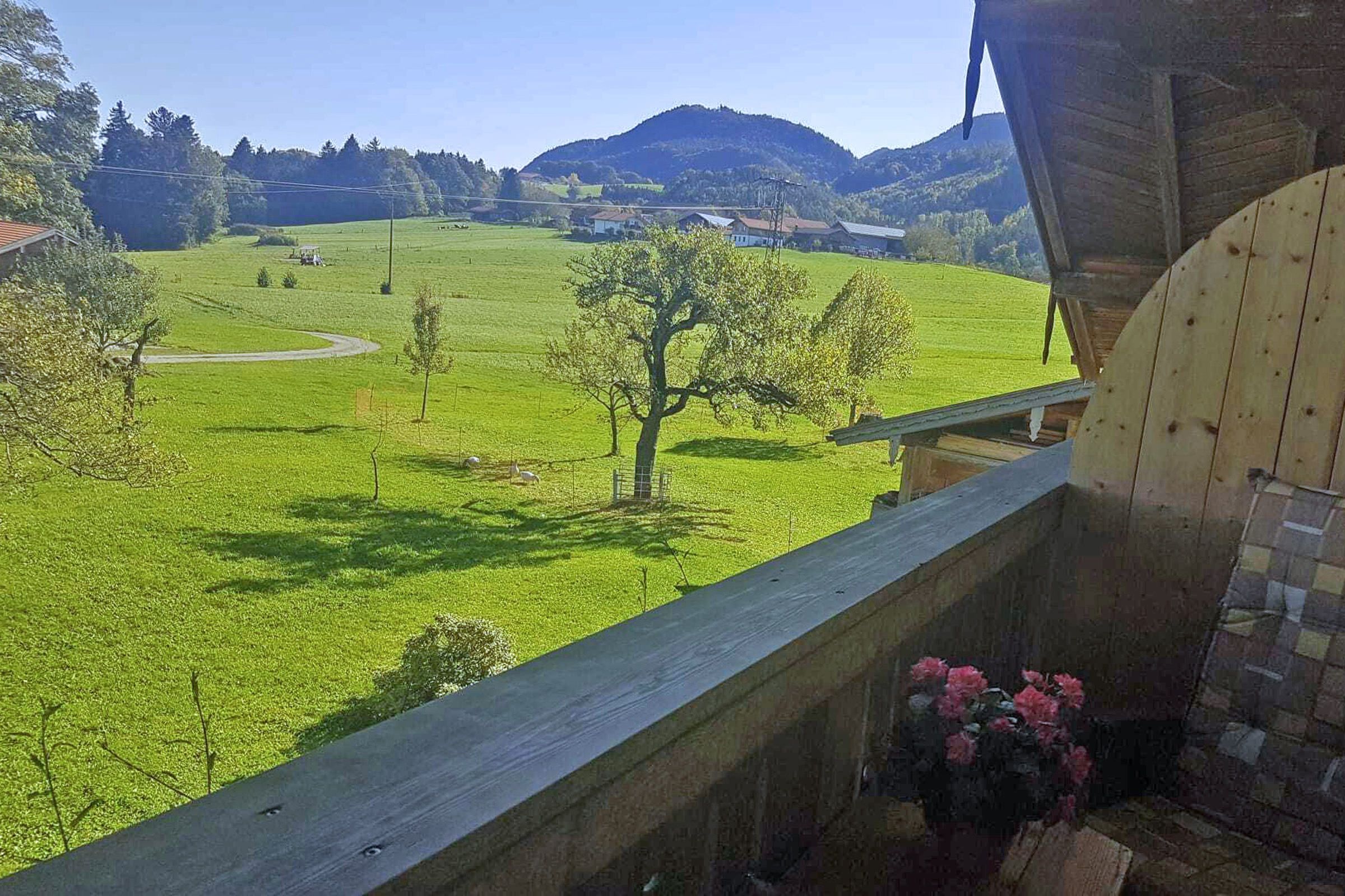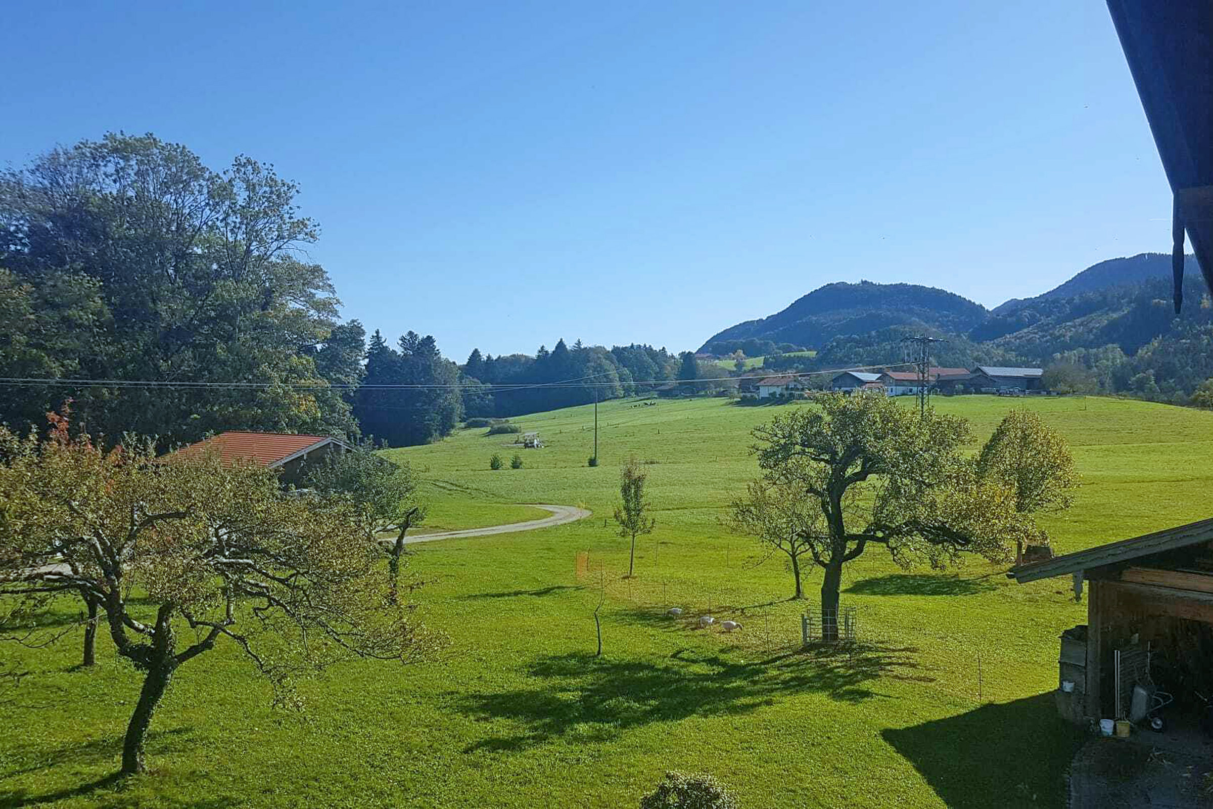 Ruhiger, gepflegter noch klein bewirtschafteter Bauernhof mit Kühen und Katzen. Der Hof liegt auf einer leichten Anhöhe nord-östlich von Aschau, in der Nähe des Landschaftsschutzgebietes Bärnsee mit herrlichen Blick ins Grüne. 4 km zwischen Aschau und Chiemsee gelegen. Komfortabel und gemütlich eingerichtete 31 qm Nichtraucher-Mansarden-Ferienwohnung mit überdachten Ost-Balkon. Wohn/Schlafzimmer mit Korkboden und Zentralheizung und SAT-TV und Internetzugang mit LAN, Kabel steht zur Verfügung. Extra Küche mit Kühlschrank mit Tiefkühlfach. Badezimmer mit Dusche/WC und Fön. Abgeschlossene Wohnung innerhalb des Bauernhof-Wohnhaus.