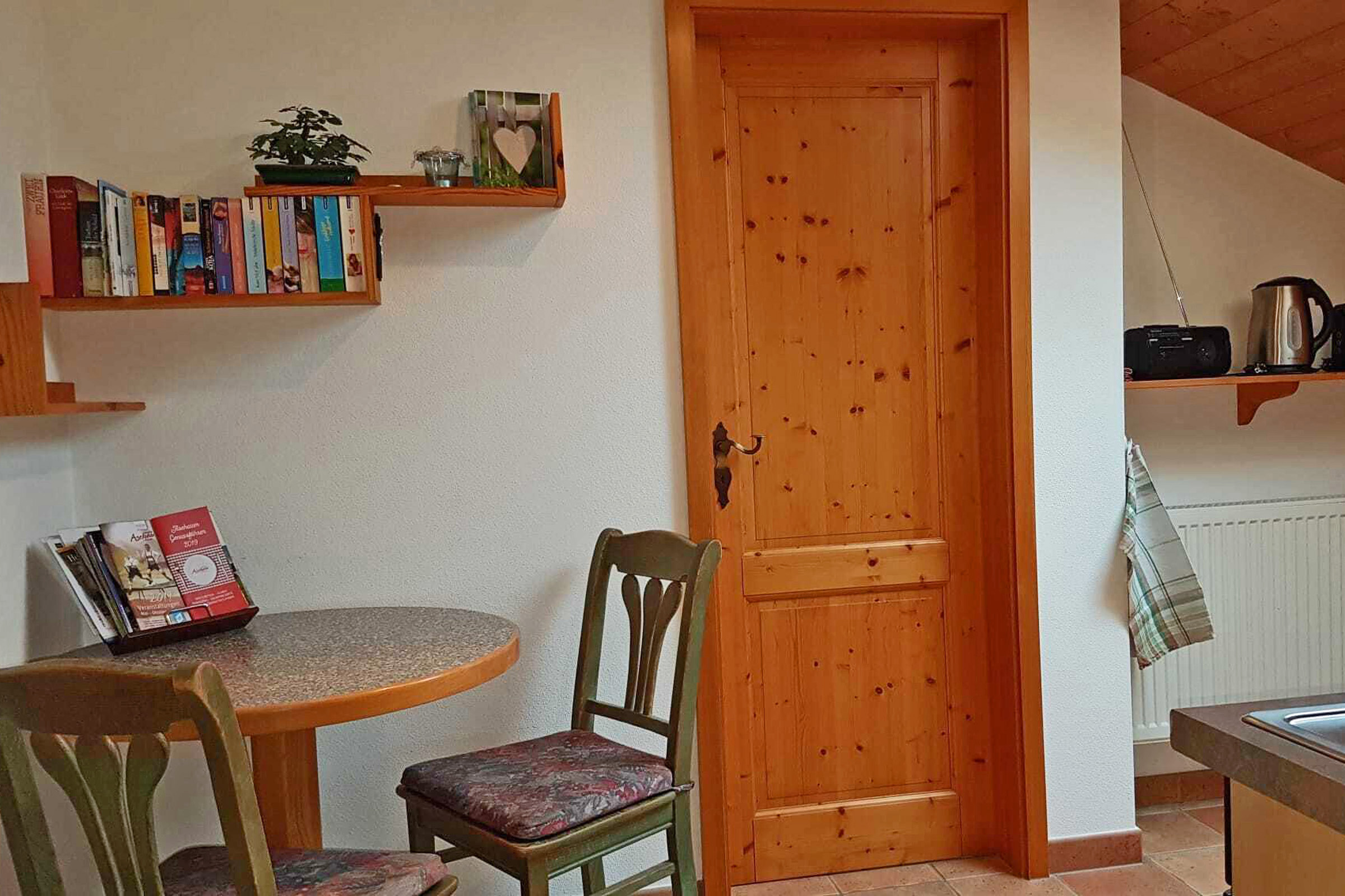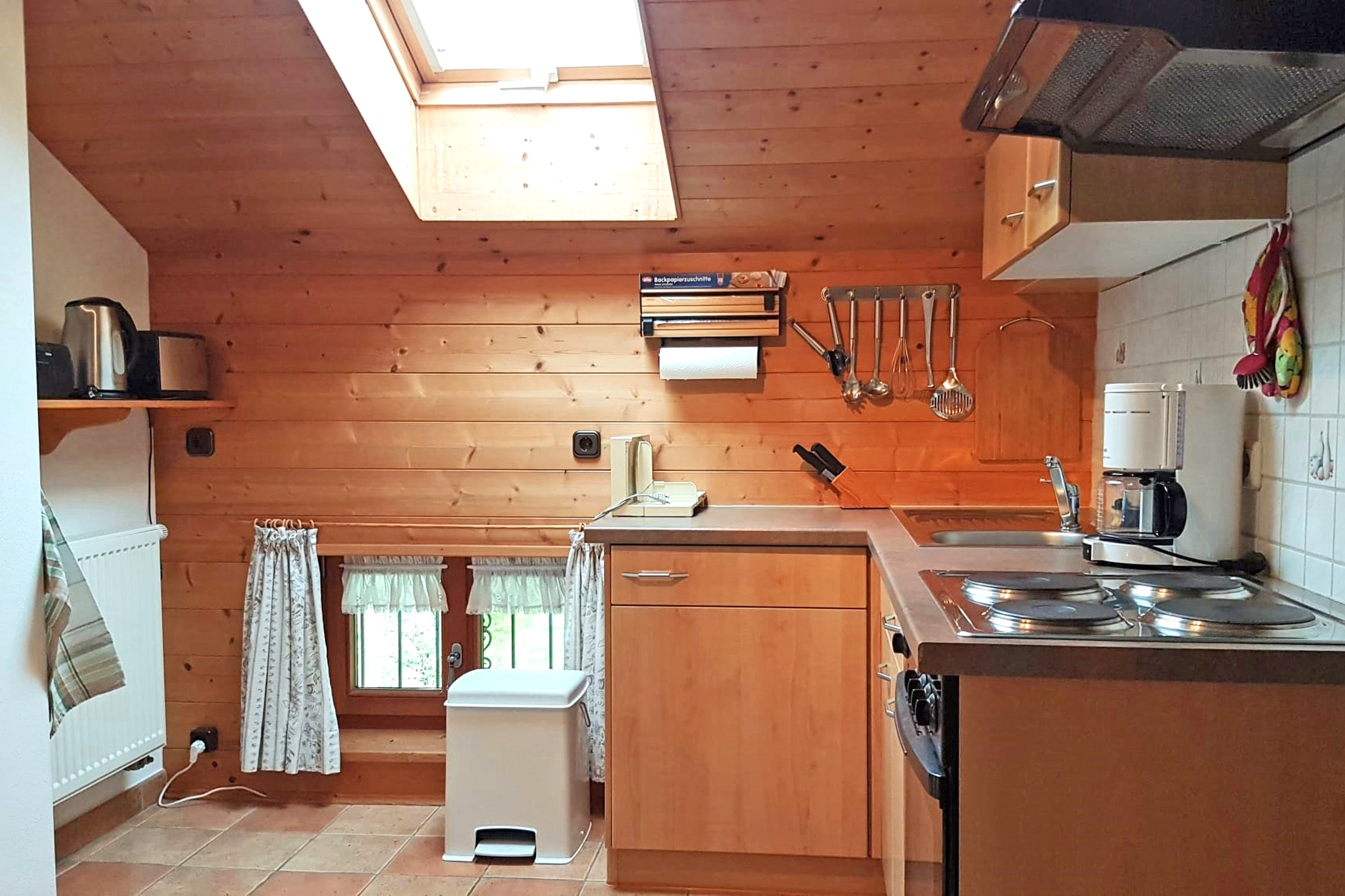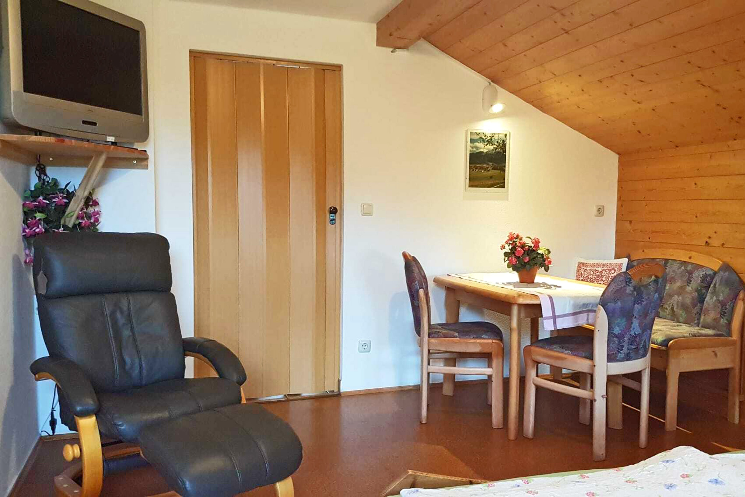 Komfortabel und gemütlich eingerichtete 31 qm Nichtraucher-Mansarden-Ferienwohnung mit überdachten Ost-Balkon. Wohn/Schlafzimmer mit Korkboden, Zentralheizung, SAT-TV und Internetzugang mit LAN, Kabel steht zur Verfügung. Extra Küche mit Kühlschrank mit Tiefkühlfach. Badezimmer mit Dusche/WC und Fön. Abgeschlossene Wohnung innerhalb des Bauernhof-Wohnhaus.