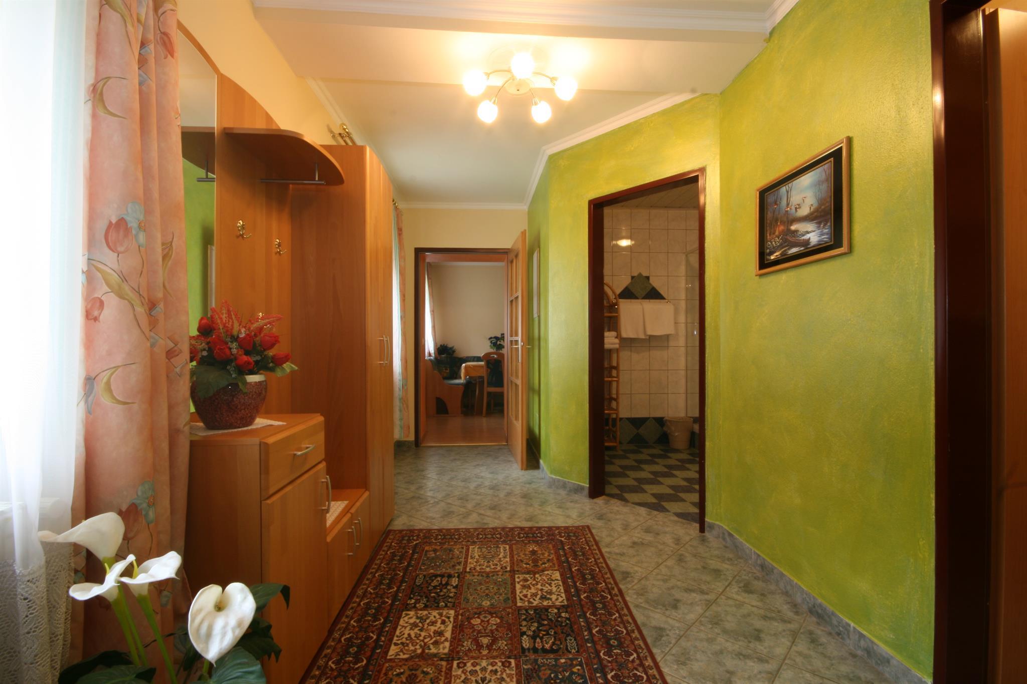 Es besteht aus einem Vorraum, einem Abstellraum, einem Wohnraum mit einer Ausziehcouch, zwei Schlafräumen, einer Küche und einer Dusch/WC-Einheit.