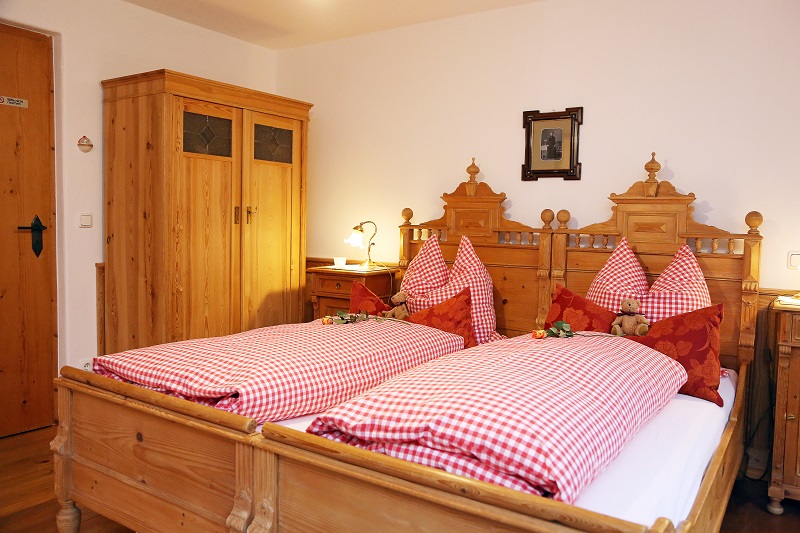 Zimmer 3 „Weberei“ Zimmer für 2-3 Personen im Süd-Ost im i einer Tasse Kaffee auf der eigenen Terrasse mit Blick in den Wald der Hektik des Alltags entfliehen. Ruhiges Doppelzimmer mit restaurierten Bauernmöbel um die Jahrhundertwende, Doppelbett mit offenen Fußende, Tisch mit zwei Stühlen, Zustellbett mit einer Länge von 190 cm, Tannenboden, Flachbild-TV, Telefon, kostenloses W-Lan, eigene Südterrasse mit Gartenmöbel, Mückenschutzgitter am Fenster, Kühlschrank, Trink- und Weingläser, Toilettenartikel, Bettwäsche, Handtücher, Föhn, Grillmöglichkeit am Haus, kostenloser Parkplatz am Haus, Stellplatz für Radl, Frühstück auch im Pavillion möglich, Nichtraucher, keine Haustiere.