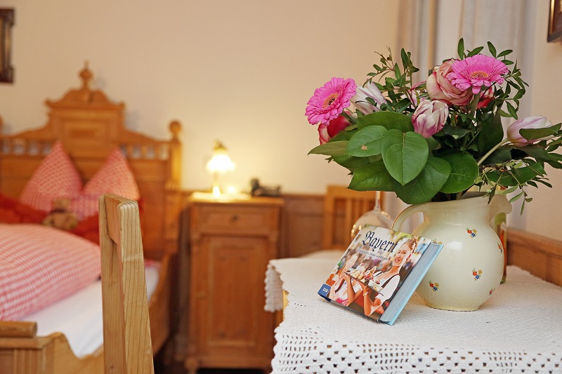 Am Ortsrand von Bernau, etwa 3 km zum Chiemseestrand in traumhafter, sonniger Lage inmitten bäuerlicher Blumenwiesen steht unser liebenswertes, ehemaliges Bauerhaus noch original aus dem Jahre 1850 aus Lehm und Stein.Großer Bauergarten mit Sonnenliegen, Lounge und vielen schattigen Plätzen mit freiem Blick ins Tal. Ausstattung: DZ/FEWOS mit Balkon/Terrasse Du/WC, Sitzgruppe, Couch, Flachbild-TV, kostenlosem W-LAN, Naturholzböden, restaurierte Bauernmöbel um die Jahrhundertwende. Bezogene Betten mit karierter Bettwäsche. Besonderheiten: regionales Frühstücksbüffet in der Bauerstube am Kachelofen oder im Pavillion im Bauerngarten auf der Blumenwiese. Das Frühstück ist bei den Zimmern im Preis inkludiert. Grillmöglichkeit. Direkt vorm Haus Wanderwege zur Kampenwand oder zur Radltour um den Chiemsee. Pauschalangebote, Parkplatz am Haus, keine Haustiere, Fahrradgarage, Nichtraucherhaus. Fahrradverleih. E-Ladestation für Autos sowie E-Bikes vorhanden.