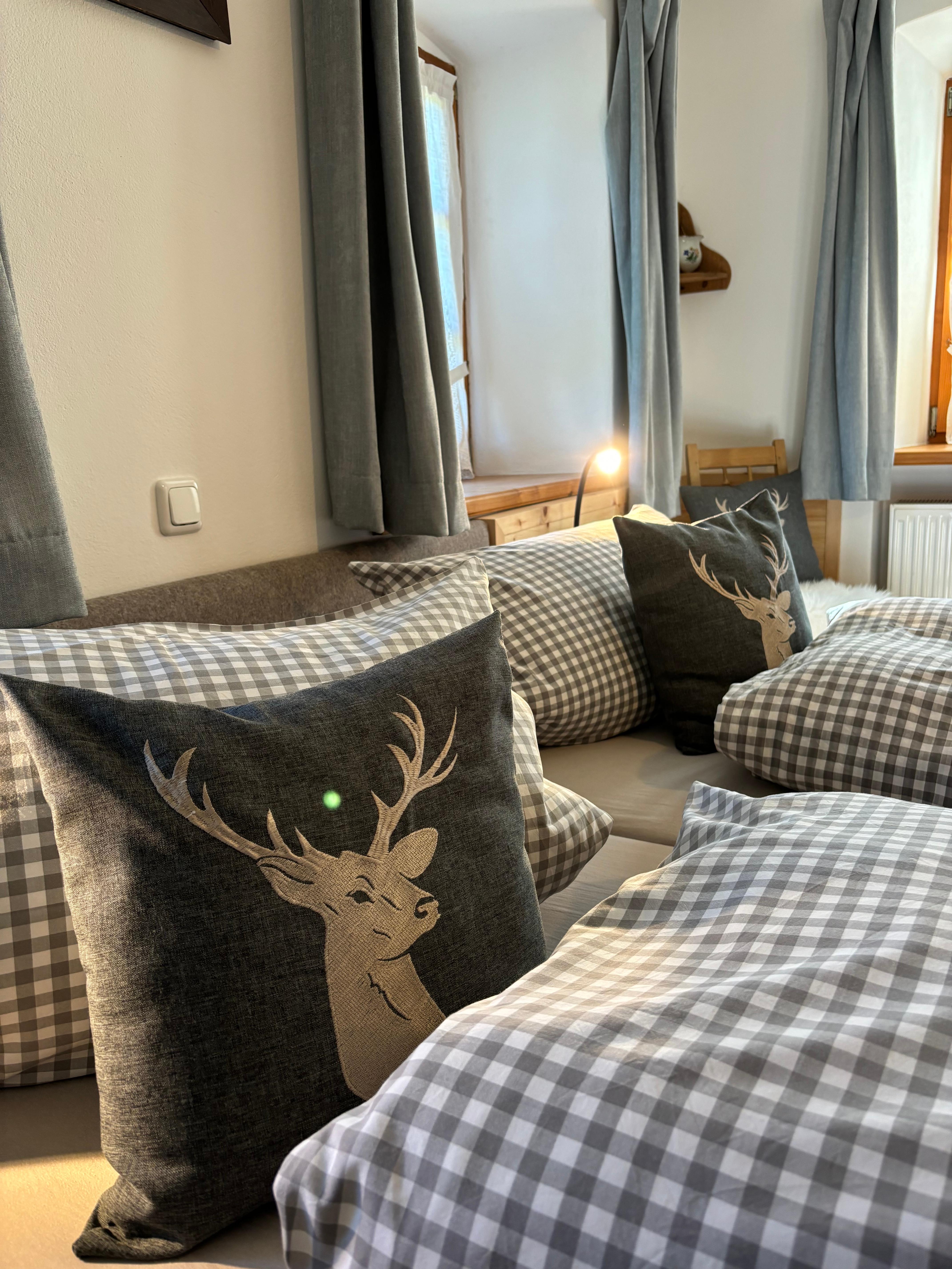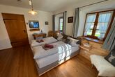 Am Ortsrand von Bernau, etwa 3 km zum Chiemseestrand in traumhafter, sonniger Lage inmitten bäuerlicher Blumenwiesen steht unser liebenswertes, ehemaliges Bauerhaus noch original aus dem Jahre 1850 aus Lehm und Stein.Großer Bauergarten mit Sonnenliegen, Lounge und vielen schattigen Plätzen mit freiem Blick ins Tal. Ausstattung: DZ/FEWOS mit Balkon/Terrasse Du/WC, Sitzgruppe, Couch, Flachbild-TV, kostenlosem W-LAN, Naturholzböden, restaurierte Bauernmöbel um die Jahrhundertwende. Bezogene Betten mit karierter Bettwäsche. Besonderheiten: regionales Frühstücksbüffet in der Bauerstube am Kachelofen oder im Pavillion im Bauerngarten auf der Blumenwiese. Das Frühstück ist bei den Zimmern im Preis inkludiert. Grillmöglichkeit. Direkt vorm Haus Wanderwege zur Kampenwand oder zur Radltour um den Chiemsee. Pauschalangebote, Parkplatz am Haus, keine Haustiere, Fahrradgarage, Nichtraucherhaus. Fahrradverleih. E-Ladestation für Autos sowie E-Bikes vorhanden.