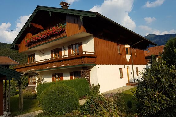 Unsere vom Deutschen Tourismusverband mit 4 Sternen ausgezeichnete Ferienwohnung hat eine sehr ruhige Lage und Bergblick. Sie verfügt über einen gemütlichen Wohnraum mit einer neuen Eckbank und einer neuen Couchecke. Die Küche ist separat und sehr gut ausgestattet. Das Tageslichtbad hat sowohl eine Dusche als auch eine Badewanne. Das Schlafzimmer ist im Landhausstil eingerichtet. Zur Wohnung gehört eine sonnige Terrasse mit kleinem Garten und ein KFZ-Stellplatz. Bettwäsche und Handtücher sind inklusive. Eine Waschmaschine und Trockner stehen den Gästen im Keller zur Verfügung. Die Loipe im Winter und der Wössener See im Sommer sind bequem zu Fuß erreichbar. Das nächste Skigebiet ist die Winklmoos-Steinplatte.