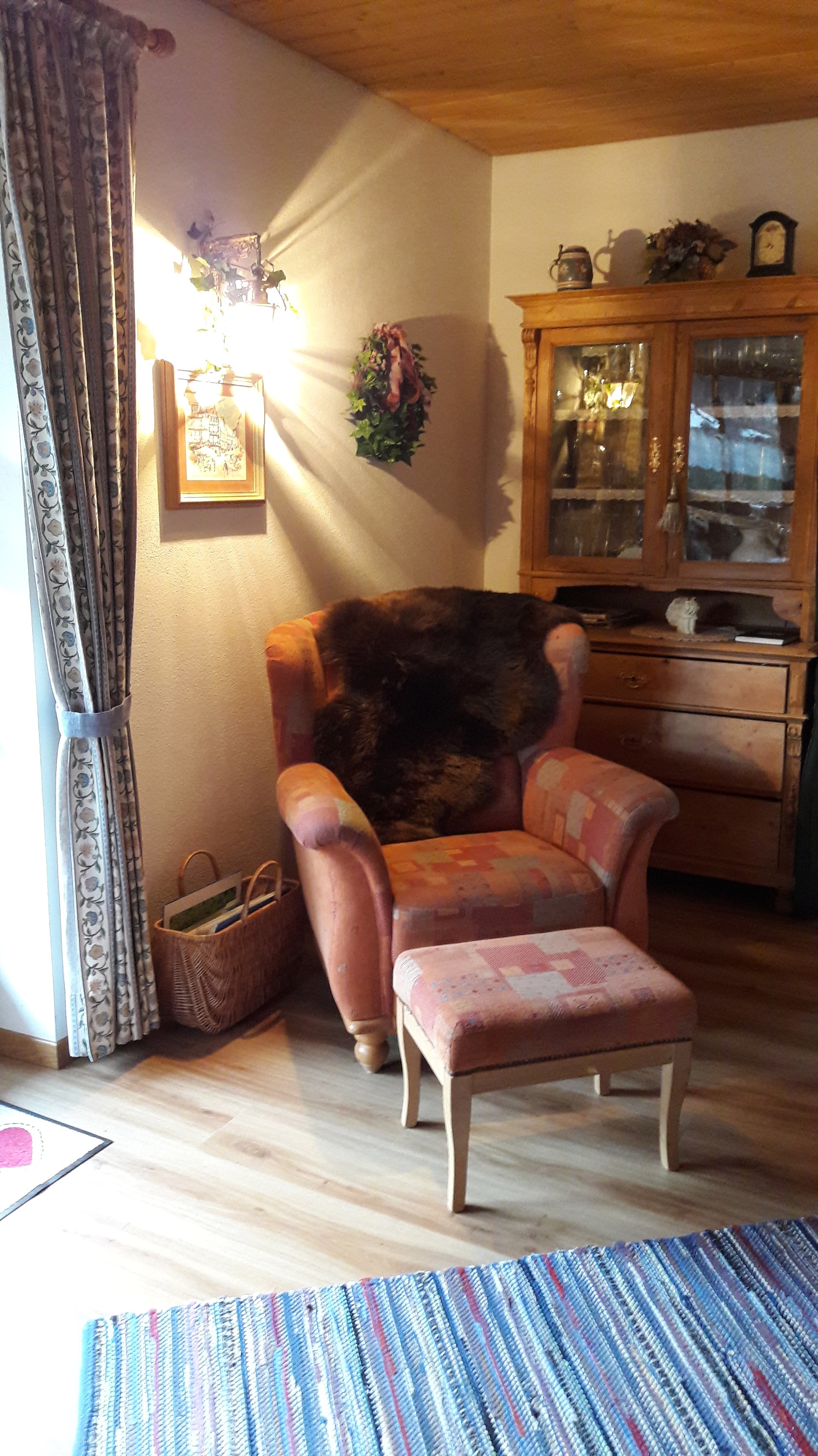 Unsere liebevoll im bayrischen Stil eingerichtete Ferienwohnung verfügt über einen gemütlichen Wohnraum mit neuer Sitzecke und Flachbildschirm, 1 Schlafraum, Küche, Tageslichtbad mit Dusche, Wanne und WC, Terrasse, Kfz-Stellplatz. Ein Babyreisebett steht auf Anfrage zur Verfügung. Wäsche und Handtücher werden gestellt. Nichtraucherwohnung!