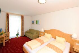 Unsere neuen Doppelzimmer aus Fichtenholz laden zum Wohlfühlen ein. Zimmergröße 25-30m².
