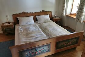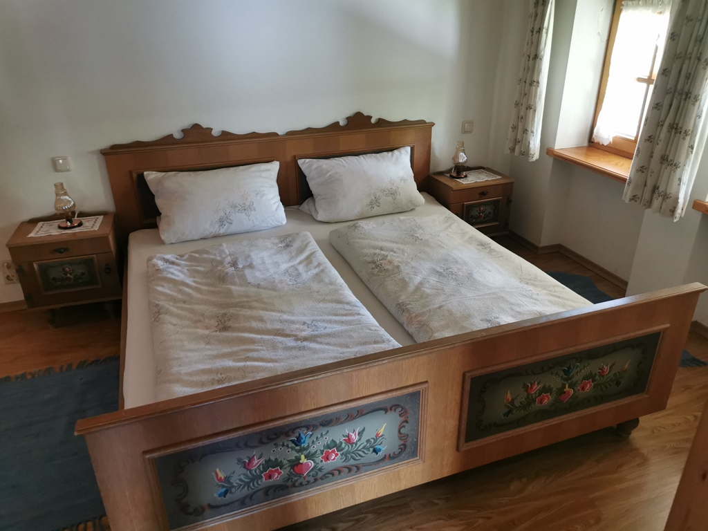 Ferienwohnung für 2-4 Personen, gut ausgestattet mit 1 Schlafzimmer im Landhausstil, Wohn-Esszimmer mit Ausziehcouch, geräumige Küchenzeile mit Backofen, Dusche/WC und möbliertem Balkon. In unserer Unterkunft ist Brötchenservice oder auf Wunsch auch Frühstück möglich. Die Ferienwohnung verfügt über einen Balkon mit Blick auf die Berge und die schöne Natur Schlechings. Außerdem beinhaltet die Unterkunft Kabel-TV und einen Flachbildfernseher. Handtücher und Toilettenpapier sind im Preis inkludiert.