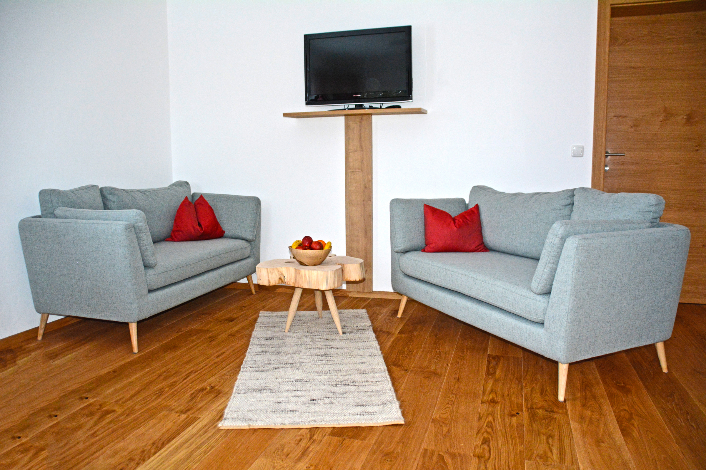 Die Ferienwohnung für maximal 4 Personen bietet auf 59 qm Wohnfläche alles was Sie für einen erholsamen Urlaub brauchen. Genießen Sie den Süd/Ost-Balkon mit Blick auf die heimische Bergwelt und ruhen sich dort nach einer genussvollen Bergtour aus. Unsere Wohnung erwartet Sie mit zwei separaten Schlafzimmern mit großen Doppelbetten, ein heller Wohnraum mit vollausgestatteter Küchenzeile, Flat-SAT-TV, kostenloses WLAN, ein großer Esstisch und zwei Sofas. Die Wohnung hat durch das Zusammenspiel von Holz und modernen Elementen eine gemütliche Atmosphäre, die zum Entspannen und genießen einlädt. Das geräumig gestaltete Bad lädt mit der ebenerdigen Regenschauer-Dusche zu erfrischenden Momenten ein.