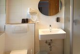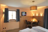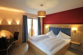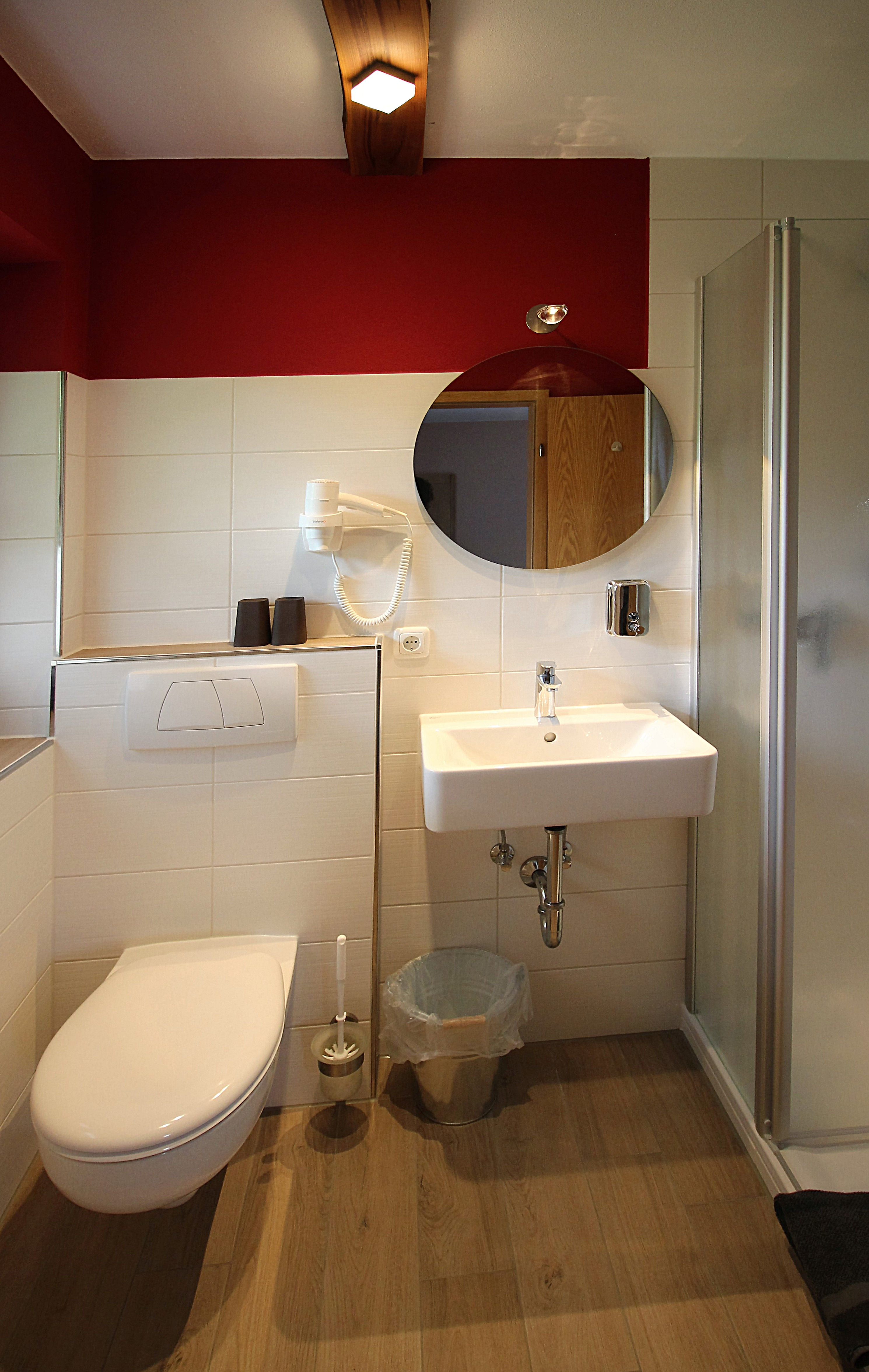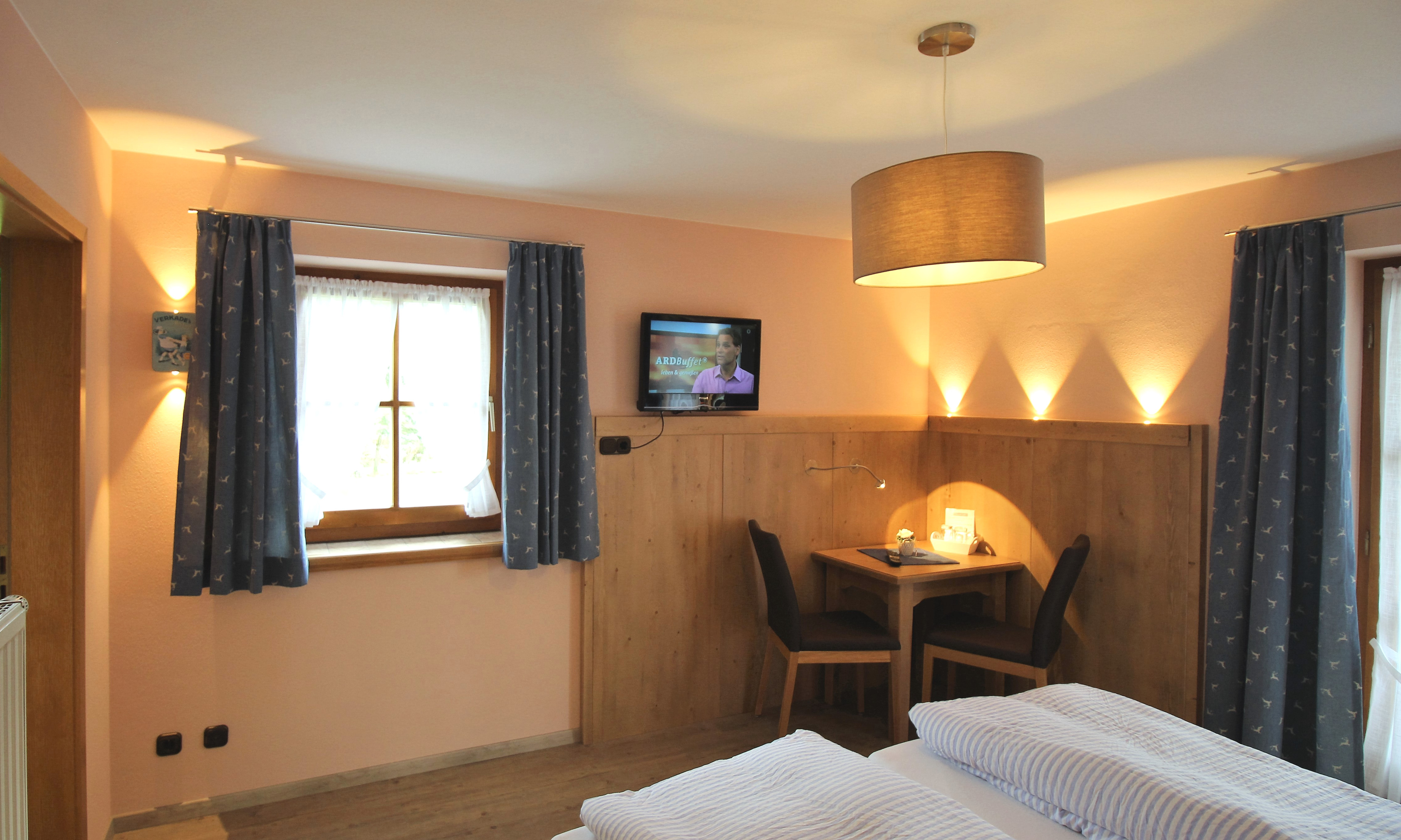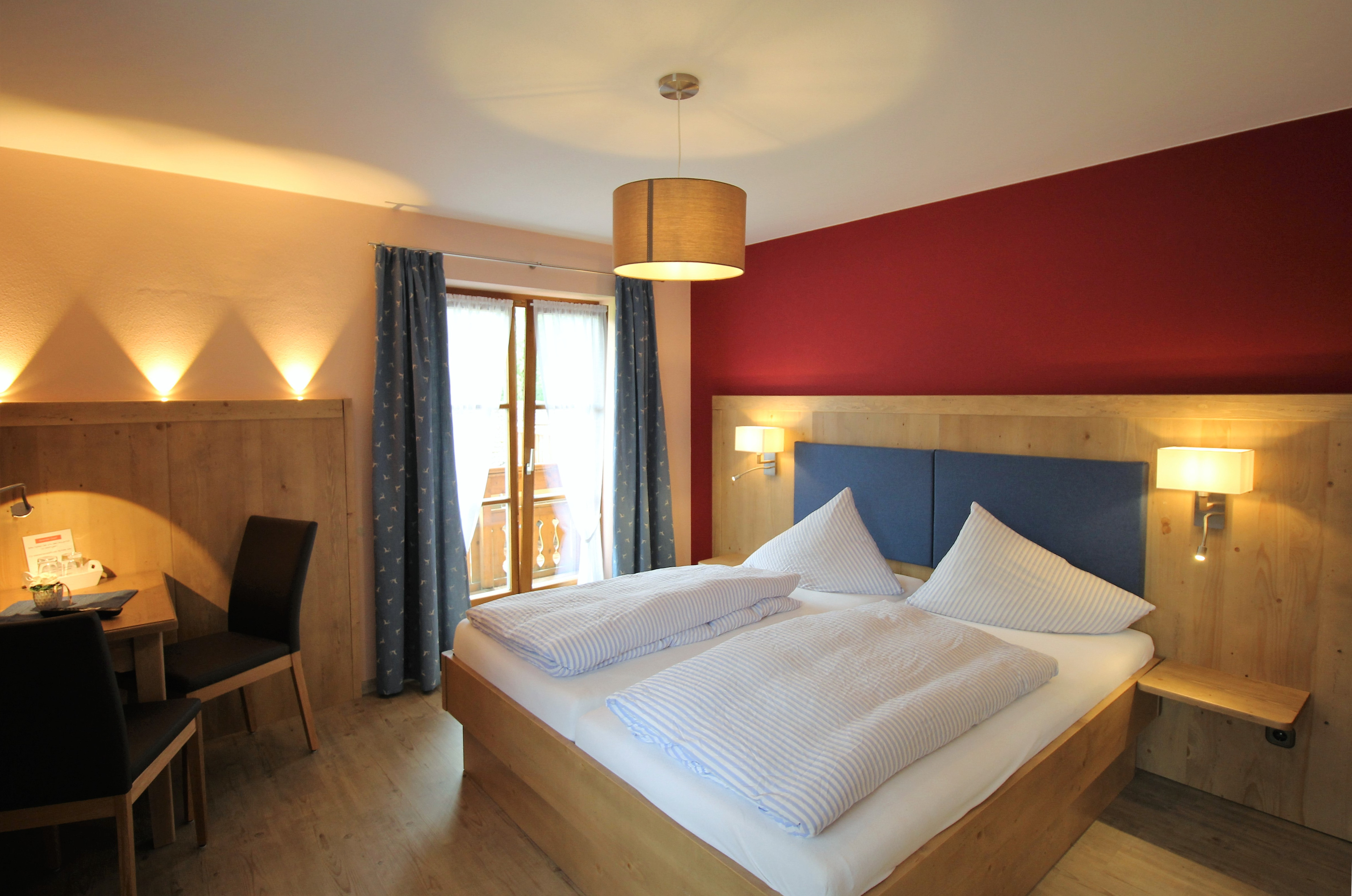 Das Zimmer wurde 2016 komplett neu renoviert. Ausstattung: Massivholz-Doppelbett, kleine Sitzecke mit Wandvertäfelung, Fußboden in Holzoptik, Sat-TV mit Flachbildschirm, kostenloses W-LAN und Zimmersafe, hochwertige LED-Beleuchtung. Badausstattung: Echtglas-Dusche, WC, Föhn, Seifenspender. Möblierter Balkon mit Blick in den Garten.