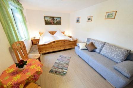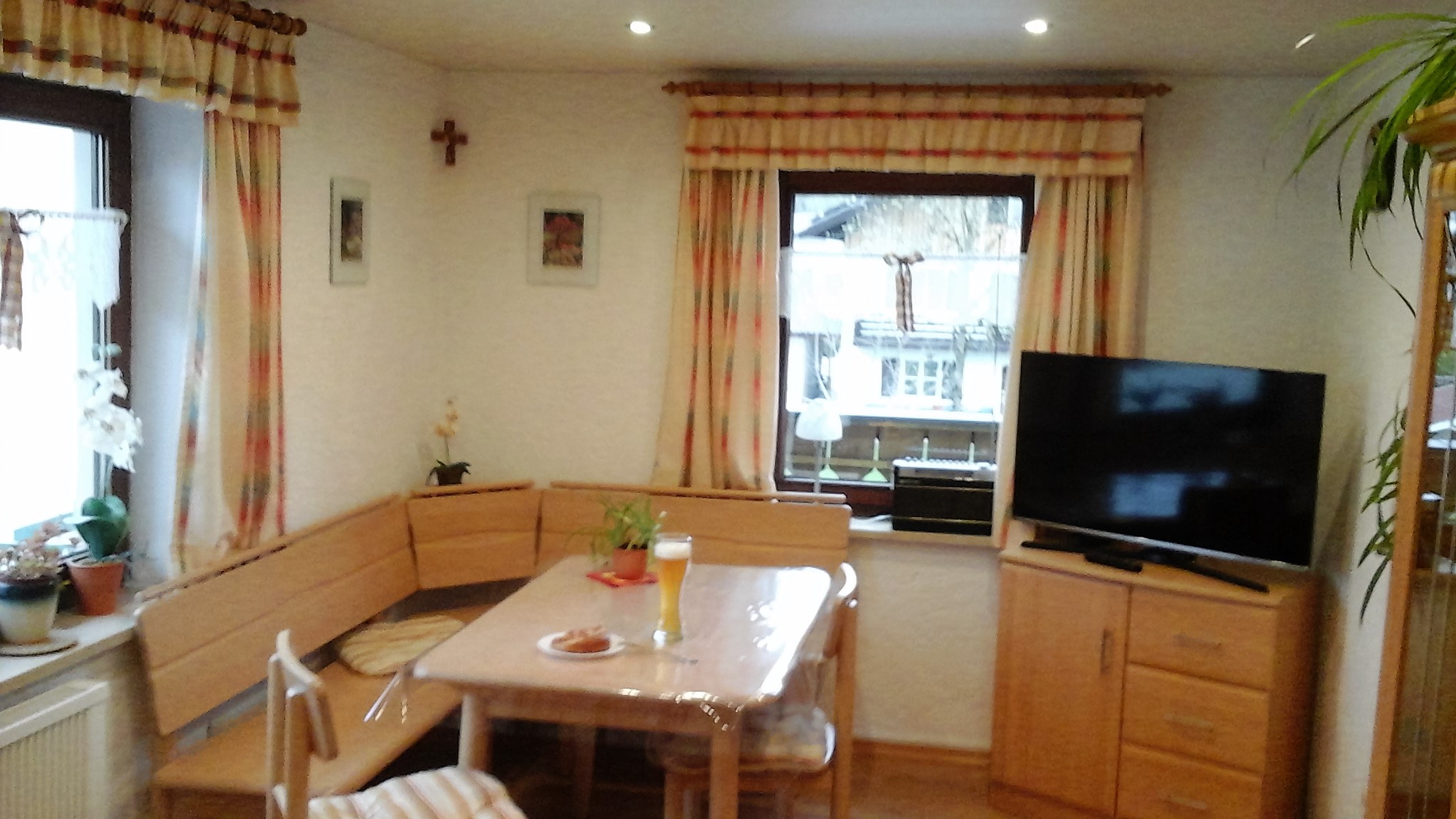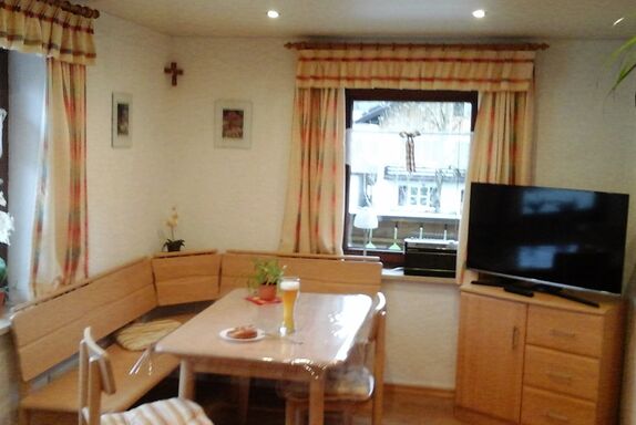 Die komfortable Ferienwohnung befindet sich im 1. Stock mit Balkon und hat eine Wohnfläche von ca. 65 qm. Sie bietet Platz für 2 bis 5 Personen. Über einen kleinen Flur gelangen Sie in das Badezimmer mit Dusche und WC, sowie in eines der beiden separaten Schlafzimmer und in die Küche. In der neuen Einbauküche mit Geschirrspüler können Sie sich leckeres Essen kochen. Und im Wohnzimmer mit Essecke, können Sie sich anschließend Ihre Köstlichkeiten schmecken lassen. Von der Küche aus kommen Sie auch in das zweite Schlafzimmer, wo Sie sich vom erlebnisreichen Urlaubstag erholen können. Kinderhochsitz und Kinderbett können Sie gerne auf Wunsch verwenden. Die Ferienwohnung ist mit Vollholzmöbeln ausgestattet.