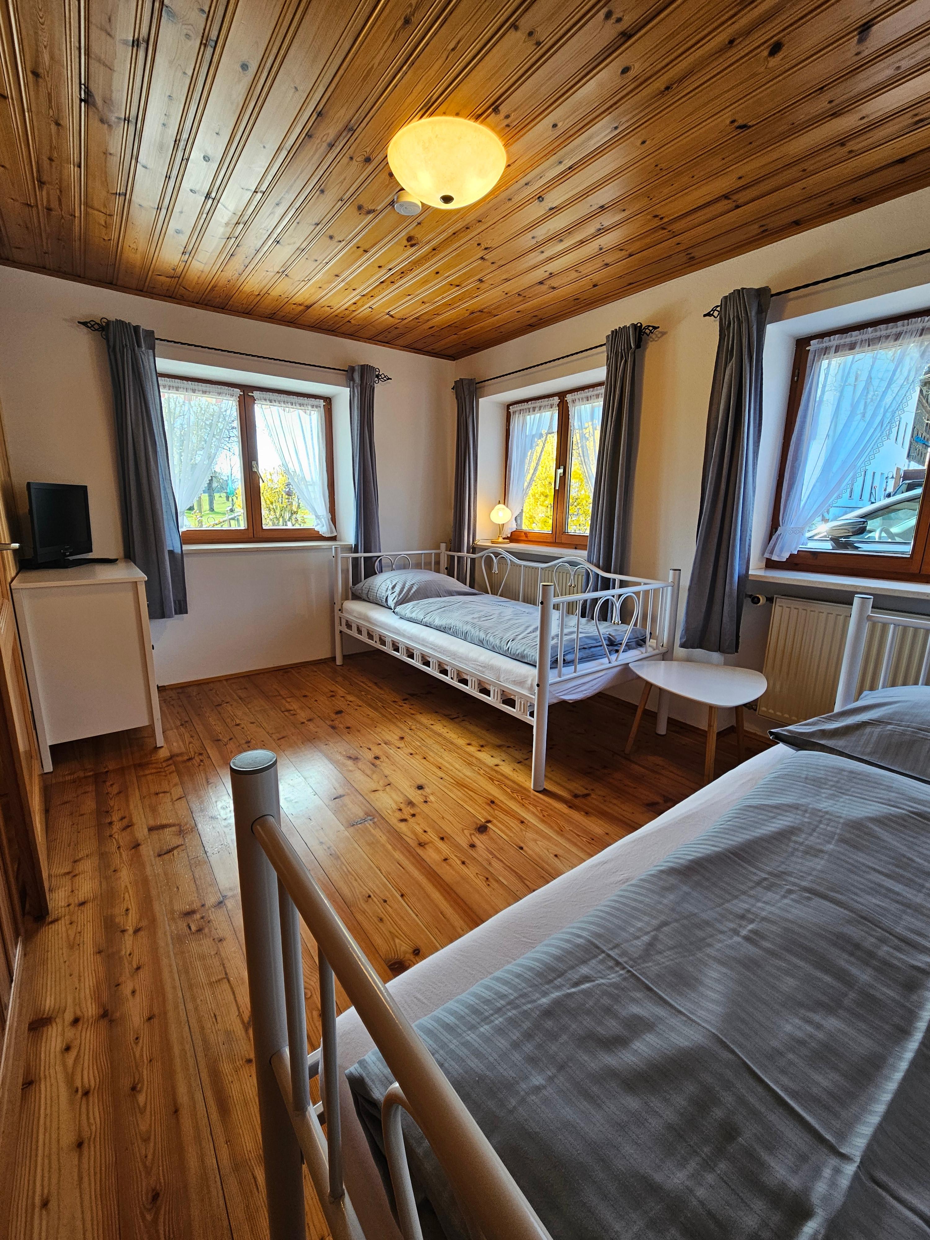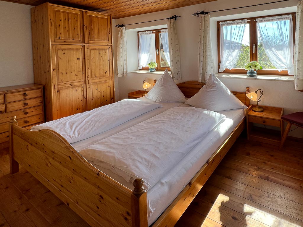 Herzlich Willkommen auf dem Loisenhof. In wunderbarer freier Lage, liegt unser bewirtschafteter Hof mit Kälbern. Genießen Sie die ruhige Lage und den herrlichen Bergblick. Eine hauseigene Minigolfanlage, im sehr großen Garten mit Trampolin, Schaukel, Rutsche, Liegen, Grill und Sitzmöglichkeiten stehen unseren Gästen genauso zur Verfügung wie eine Tischtennisplatte, unsere E-Ladesäulen und ein Ladeschrank für die Akkus der E-Bikes. Zum schönen Chiemsee-Strandbad sind es 700m. Viele Rad- und Wanderwege führen Sie direkt ab Hof durch eine sehr schöne Landschaft. Drei sehr gut ausgestattete Ferienwohnung im Haupthaus mit großem möblierten Ost- bzw Süd-Ost-Balkon. Alle drei FeWo`s verfügen über 2 getrennte Schlafzimmer, Küche mit Essbereich, Spülmaschine, Bad mit Dusche/WC, Föhn, Sat-TV. Die Fewo`s verfügen außerdem über einen geräumigen Eingangsbereich und die FeWo Sonntagshorn außerdem noch über ein kl. Wohnzimmer. Die Ferienwohnung Hochfelln verfügt über einen großen Wohnraum mit Küche, Essbereich und Couch. Im Nebenhaus sind zwei Ferienwohnungen. Die gut ausgestattete FeWo Steinplatte im 1. OG mit einem großen möblierten Süd-Ost-Balkon verfügt über ein Schlafzimmer mit Doppelbett, ein Bad mit Dusche/WC eine Küche mit Spülmaschine und einen Wohnraum mit Essbereich, Couch und Sat-TV. Die FeWo Hochgern im EG mit sehr großer möblierter Terrasse verfügt über ein Schlafzimmer, mit Doppelbett, einen kombinierten Wohn-Schlafraum mit zwei Tagesbetten und TV. Ein Bad mit Dusche/WC und eine Küche mit Spülmaschine und Essbereich.
