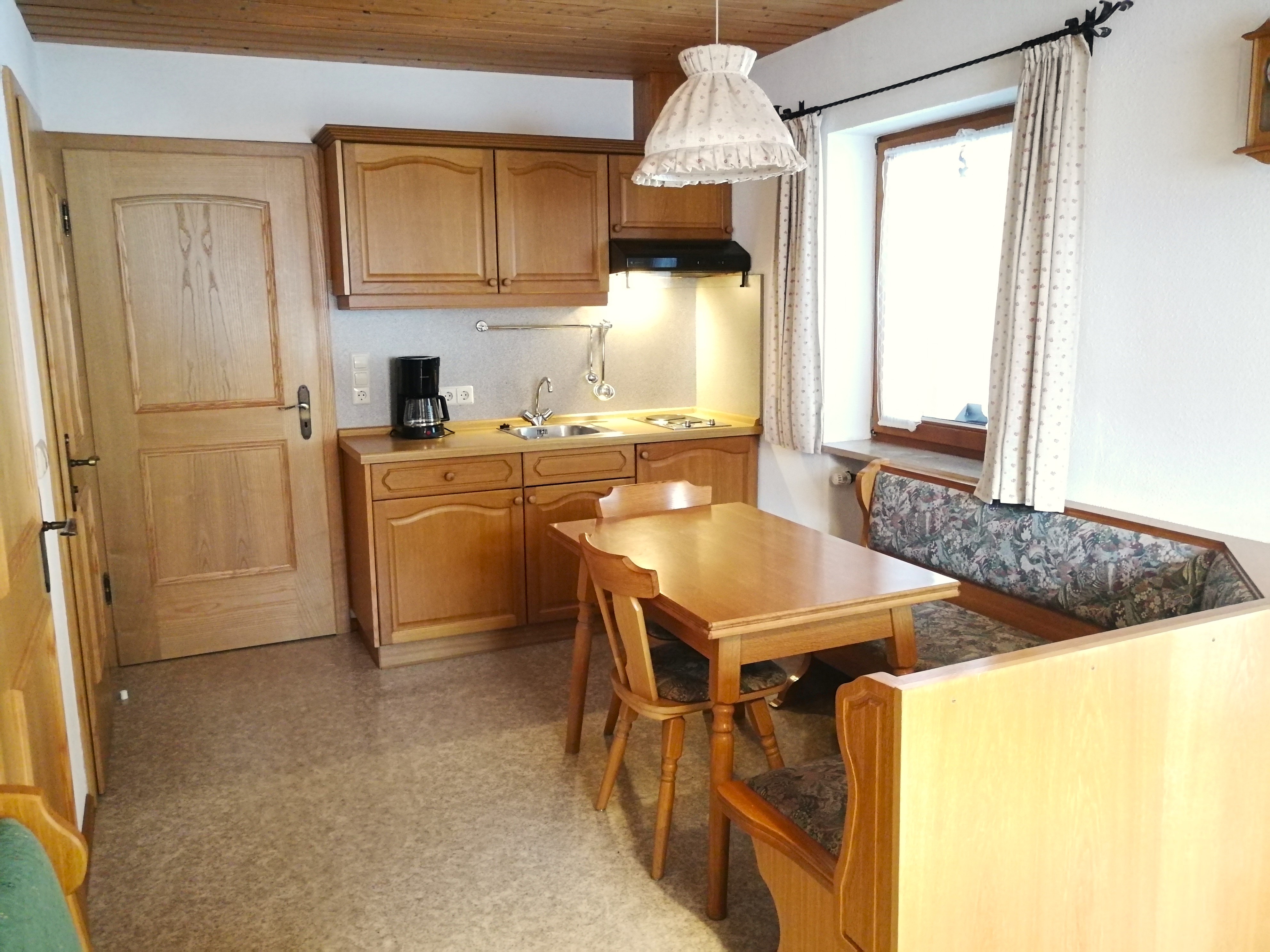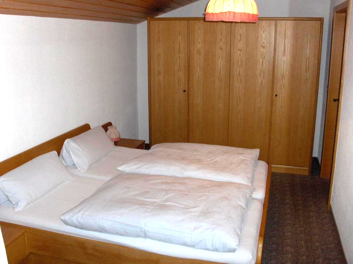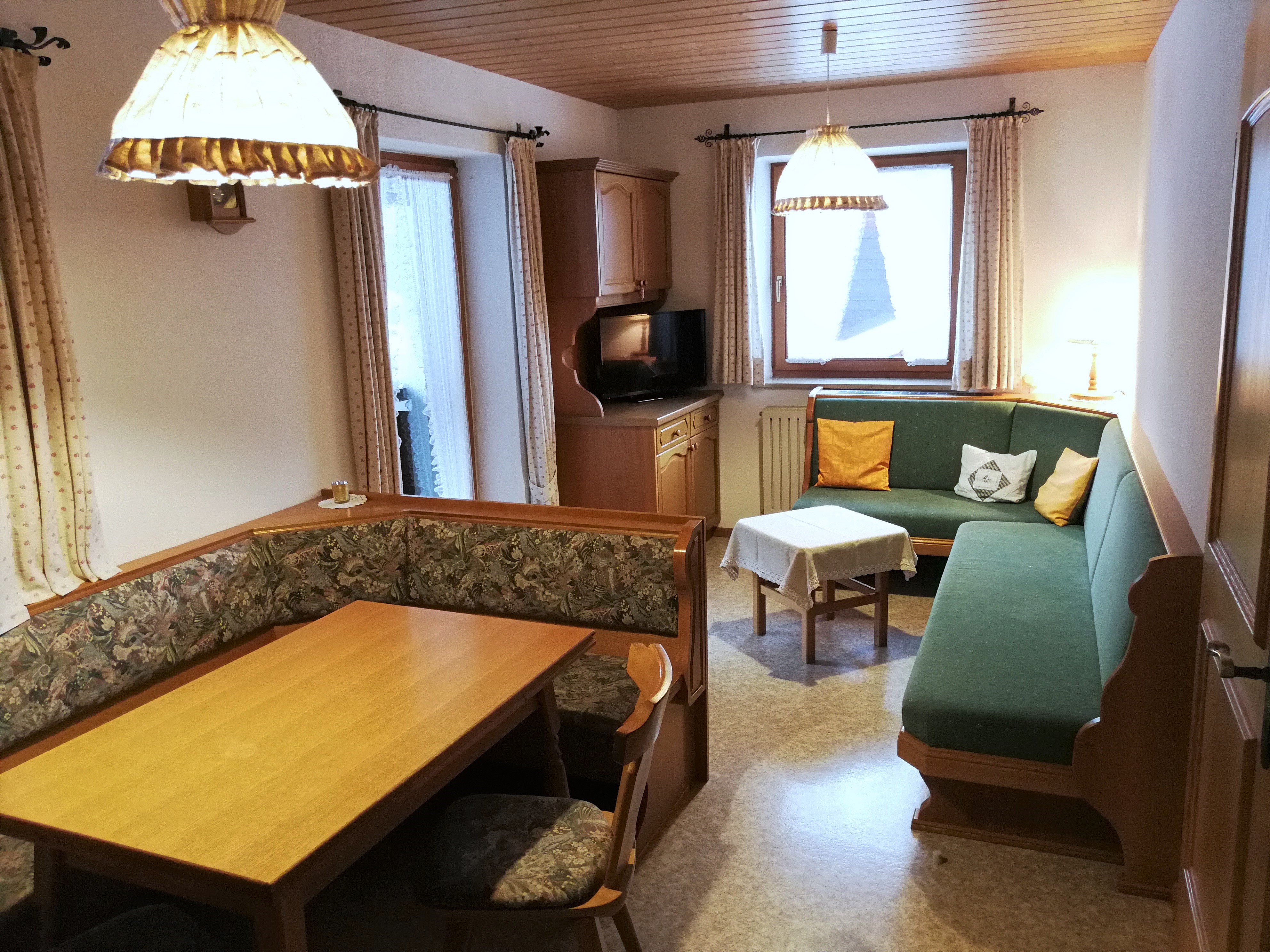 Unsere Ferienwohnung befindet sich im 1. Stock. Die 52 qm Wohnung besteht aus 2 getrennten Schlafzimmern, einem geräumigen Wohn-Küchenbereich, Dusche/WC und einem Südbalkon mit unverbautem Bergblick. Die Ferienwohnung ist komplett ausgestattet, Bettwäsche und Handtücher werden gestellt. Eine Unterstellmöglichkeit für Fahrräder ist vorhanden, keine Haustiere!