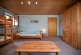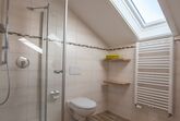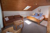 Die Ferienwohnung ist für bis zu 5 Personen eingerichtet. Im zweiten Stock befindet sich ein großes Bad mit Dusche/ WC, eine geräumige und voll ausgestatteten Wohnküche mit Balkon. Der Balkon ist sichtgeschützt und nur über die Ferienwohnung erreichbar. Die beiden Schlafräume sind über die Wohnküche erreichbar. Der Fernseher befindet sich im großen Schlafraum.