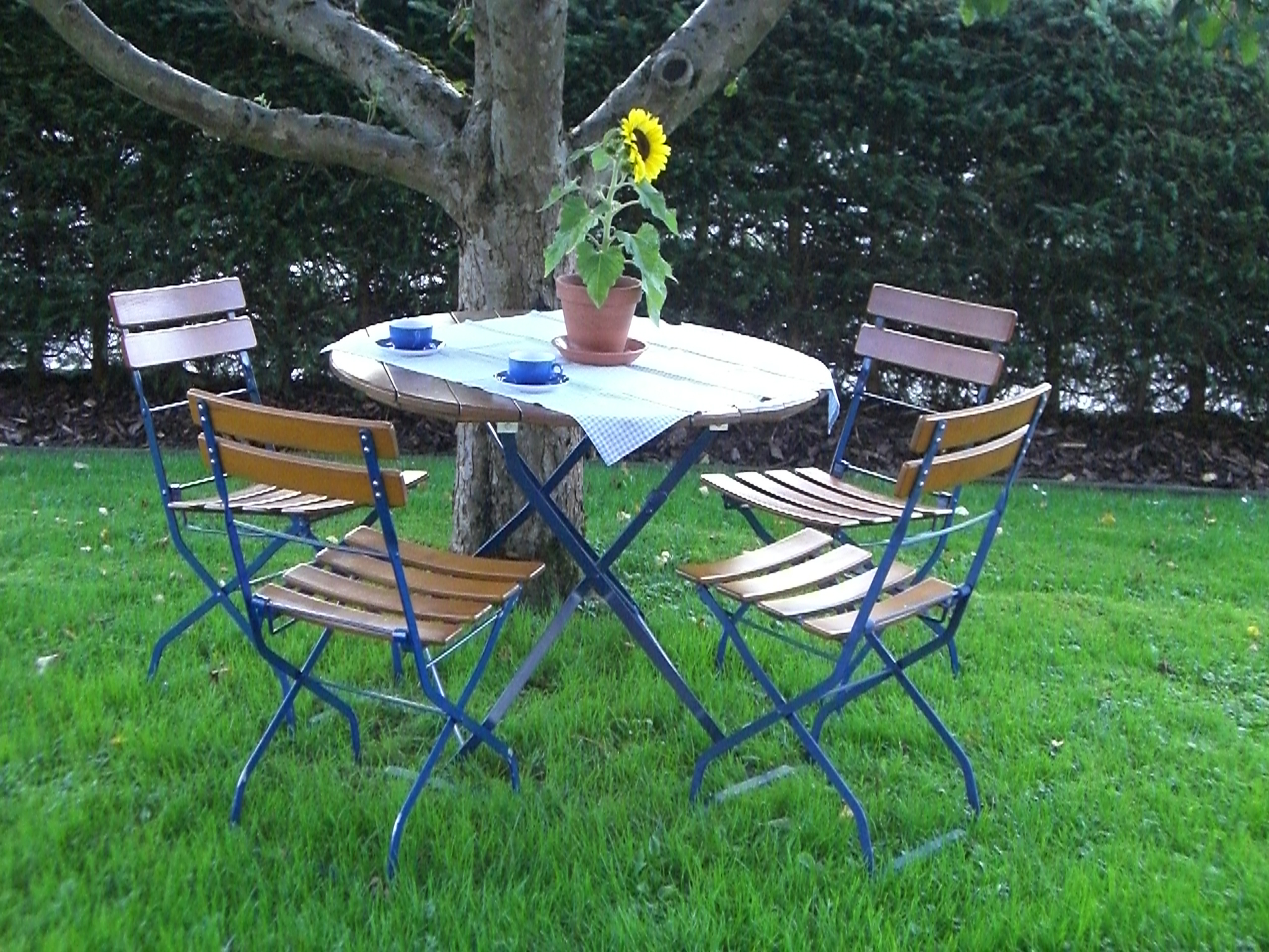 Schöner individuell eingerichteter Wohn- / Schlafraum im Landhausstil, komplett eingerichtete Küchenzeile, DU/ WC, Föhn Die Wohnung liegt im Erdgeschoss, separater Eingang, Bandscheibenmatratzen, verstellbarer Lattenrost, Kabel-TV, Radio, Terrasse mit Gartenmöbeln, Bettwäsche und Handtücher werden gestellt.