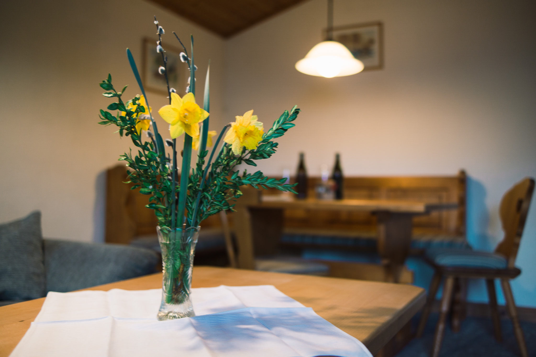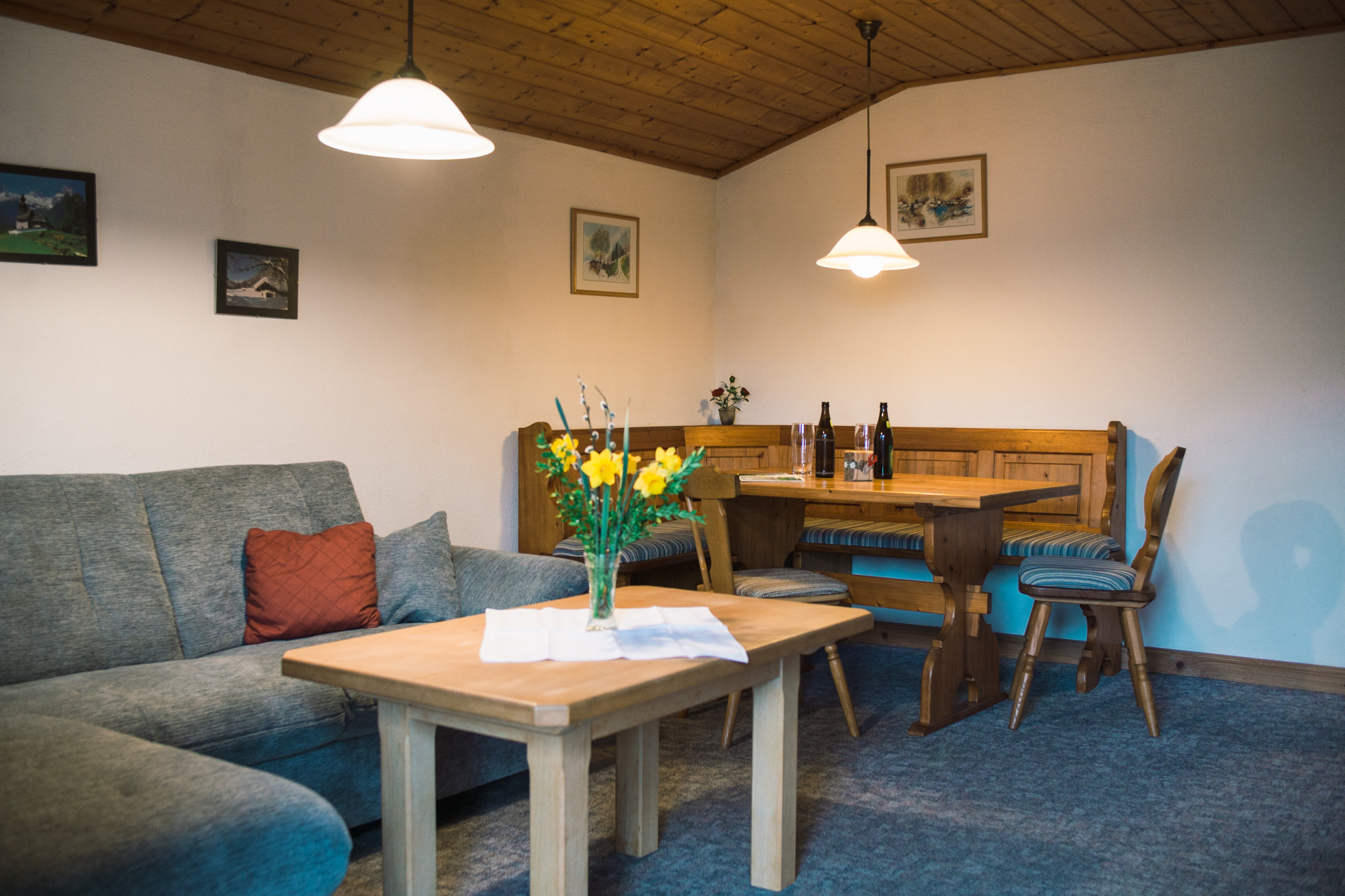 Unser gemütliches Bauernhaus steht in zentraler, ruhiger und sonniger Lage. Genießen Sie vom Balkon den herrlichen Panorama-Blick zu den Oberwössner Bergen.