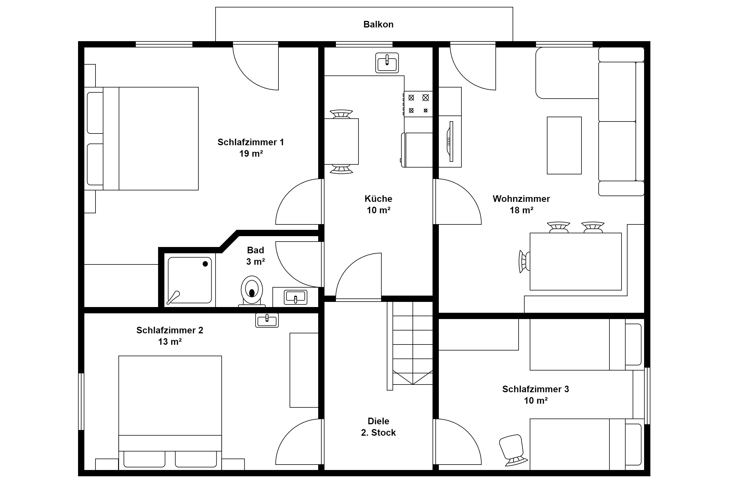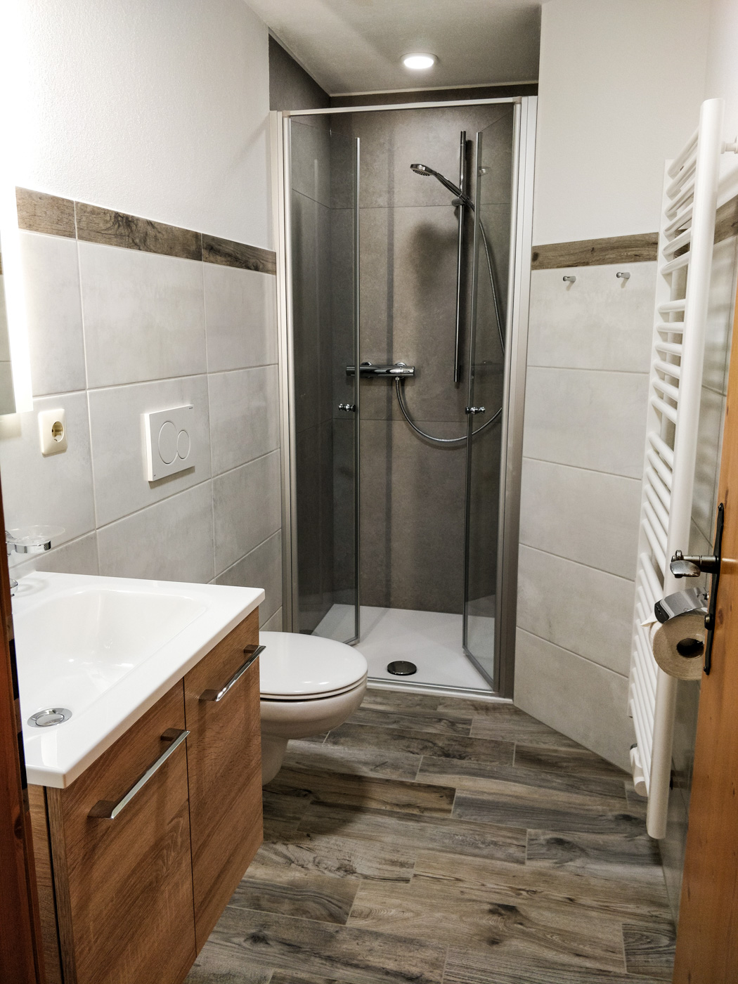 Die Wohnung befindet sich im 2. Stock und bietet Platz für 6 Personen. Sie besteht aus einem Wohnzimmer mit Couchgarnitur, Kabel-TV, Sitzecke, einer separaten, komplett eingerichteten Küche mit Geschirrspüler, 4 Platten E-Herd und Backofen-Kombigerät und Esstisch. Ein Schlafzimmer mit Doppelbett und Waschbecken, ein Schlafzimmer mit Doppelbett (und genug Platz für ein Babybett), ein Schlafzimmer mit Einzelbetten. Sowie einem Bad mit Dusche und WC (zusätzliche sep. Toilette im 1. Stock). Vom Balkon können Sie den Sonnenuntergang und den Blick auf die umliegenden Berge genießen. Bettwäsche und Handtücher werden gestellt.